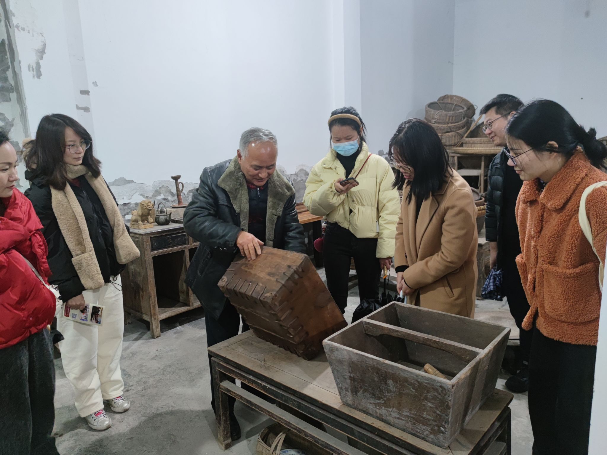 在座谈时,陈晓曼副院长表示愿意与该企业进行深度合作,助力企业发展。余总坦言同德福桃片面临着人才、营销、资金等发展瓶颈。对此,李邓金主任建议同德福桃片联合学生开展创业项目、有针对性地进行人才培养;张成姣老师认为“酒香也怕巷子深”,建议加大宣传力度;谭穗老师提出可以走进学校、借助互联网进行宣传。双方进行深入探讨之后,余总邀请大家参观自己收藏的桃片制作老物件,为本次走访画上圆满的句号。