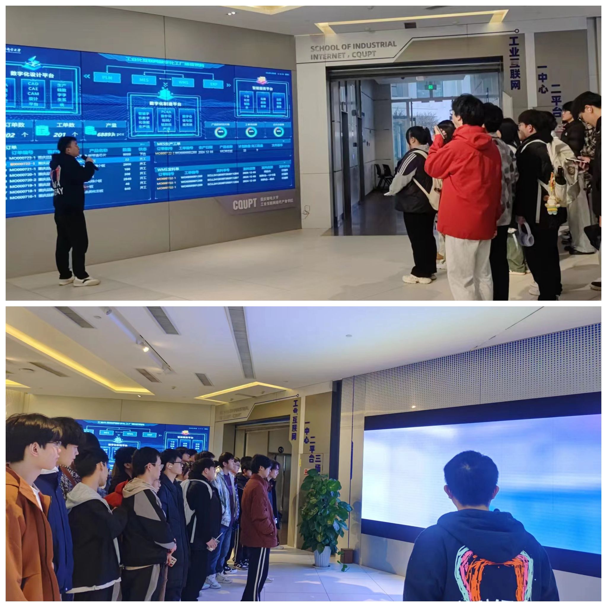 重庆邮电大学工业互联网研究院的吴意老师首先对智能工程学院师生的到来致以热烈欢迎,并引领学院师生开启参观学习之旅。众人首先踏入成果展示大厅,此处汇聚着工业互联网领域众多具有代表性的创新成果与应用案例,宛如一部生动的科技史书,记录着工业互联网从理念萌发到蓬勃发展的历程。通过讲解员讲解,同学们逐渐明晰了工业互联网如何借助物联网、大数据、人工智能等前沿技术,打破传统工业模式的桎梏,重塑生产流程与价值链条,实现工业体系从传统向智能、高效、协同方向的跃升。