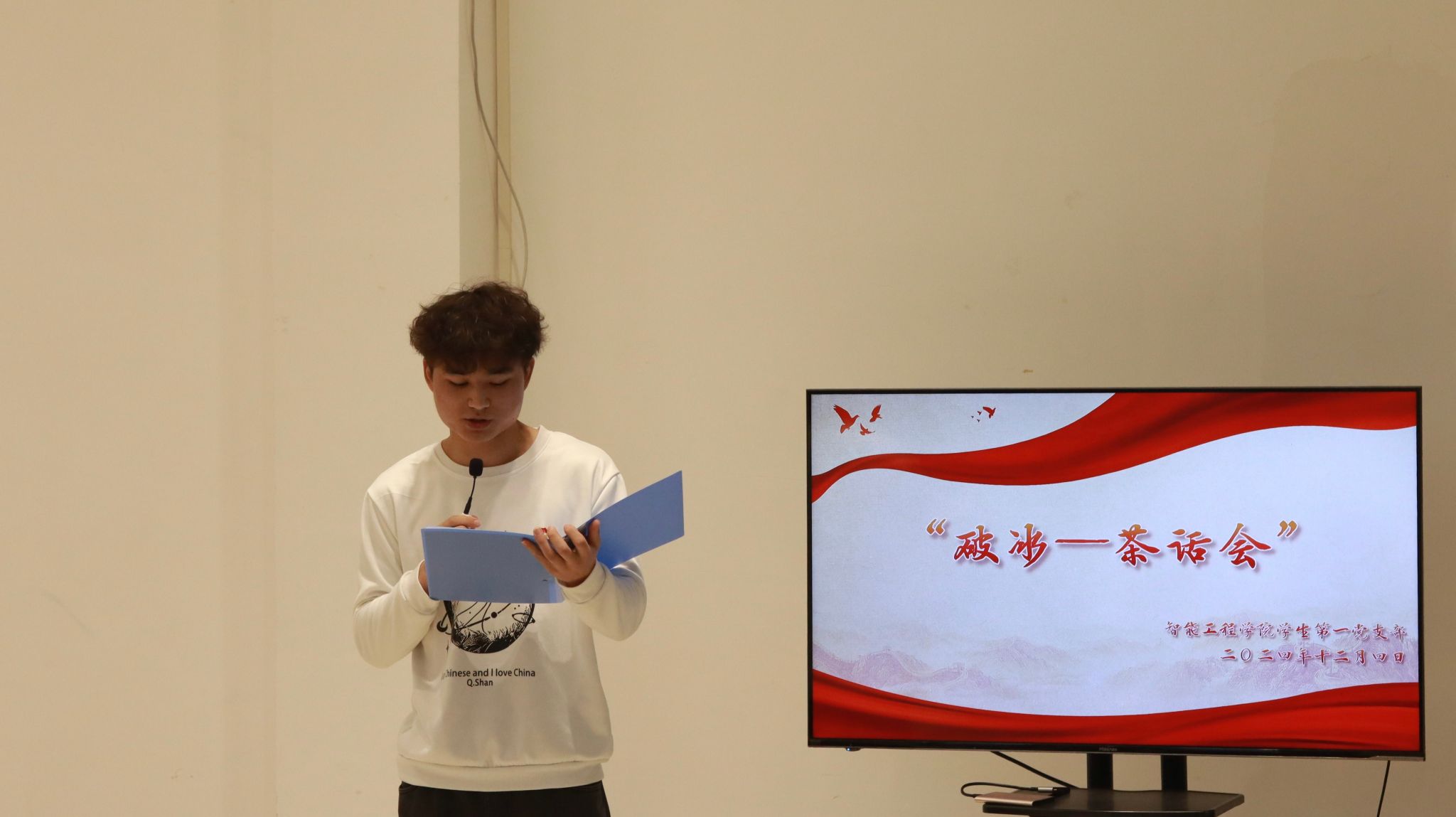 《中国共产党普通高等学校基层组织工作条例》第十三条指出,学生党支部应当加强思想政治引领,筑牢学生理想信念根基,引导学生刻苦学习、全面发展、健康成长。为增进支部党员间感情、提升支部凝聚力、让支部党员“破破冰”、让支部“升升温”,2024年12月4日14时,智能工程学院学生第一党支部于天渠书院110阅览室、梅若书院206自习室开展主题党日活动——“破冰”茶话会,活动由本支部学生党员浦绍党主持。