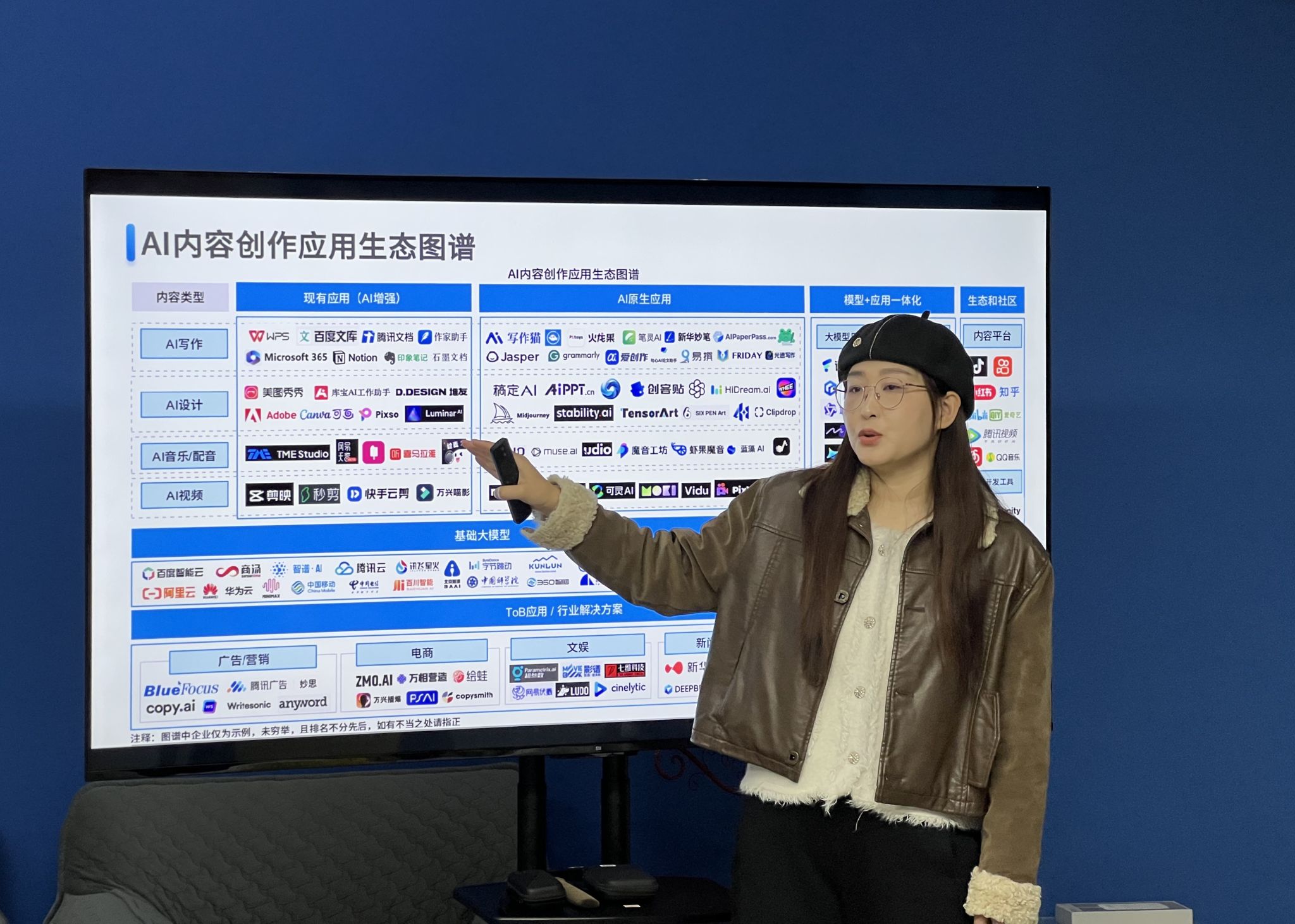 曲老师以即梦AI和可灵AI为例,介绍了影像类生成式AI工具的操作技巧,探讨了它们在艺术传媒学院专业课程教学中实际应用的可能性,引发现场教师热烈反响。