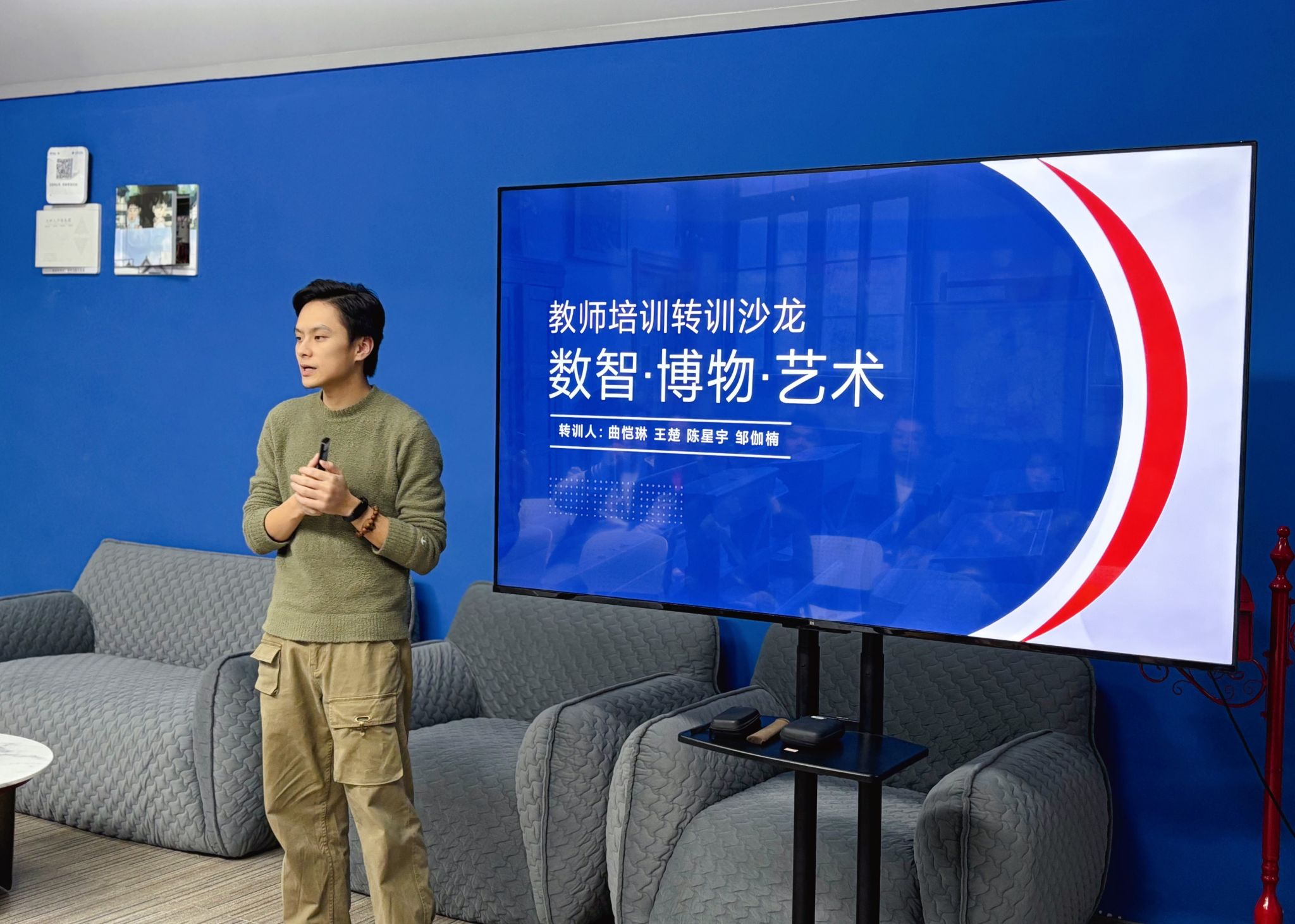 12月6日下午15:00,重庆移通学院艺术传媒学院“数智·博物·艺术”主题教师培训转训沙龙活动于天空书院浩瀚家文化体验室顺利开展。本次转训沙龙活动由广播电视编导教研室的陈星宇、邹伽楠以及网络与新媒体教研室的王楚、曲恺琳四位青年教师共同策划、举办,受到艺术传媒学院各教研室广泛支持。活动由邹伽楠老师主持。