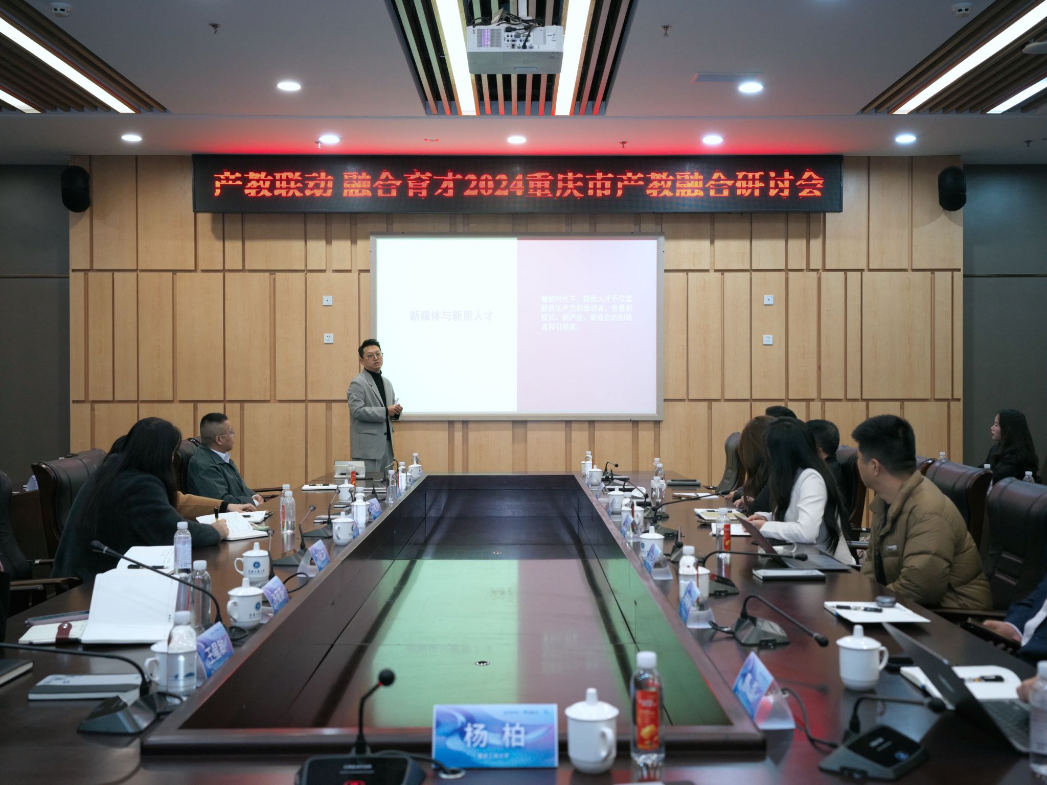 11月5日下午,应重庆市教育委员会、重庆工商大学、重庆余上鸥网络科技集团有限公司邀请,重庆移通学院艺术传媒学院行政主管李光耀、网络与新媒体专业负责人韩鹏伟、广播电视编导教研室教师黄家豪、实验室研究员余韩前往重庆工商大学参加“产教联动融合育才2024重庆市产教融合”专题研讨会,韩鹏伟老师在研讨会中做主题发言。研讨会在重庆工商大学党委常委、副校长杨柏教授的致辞拉开帷幕。