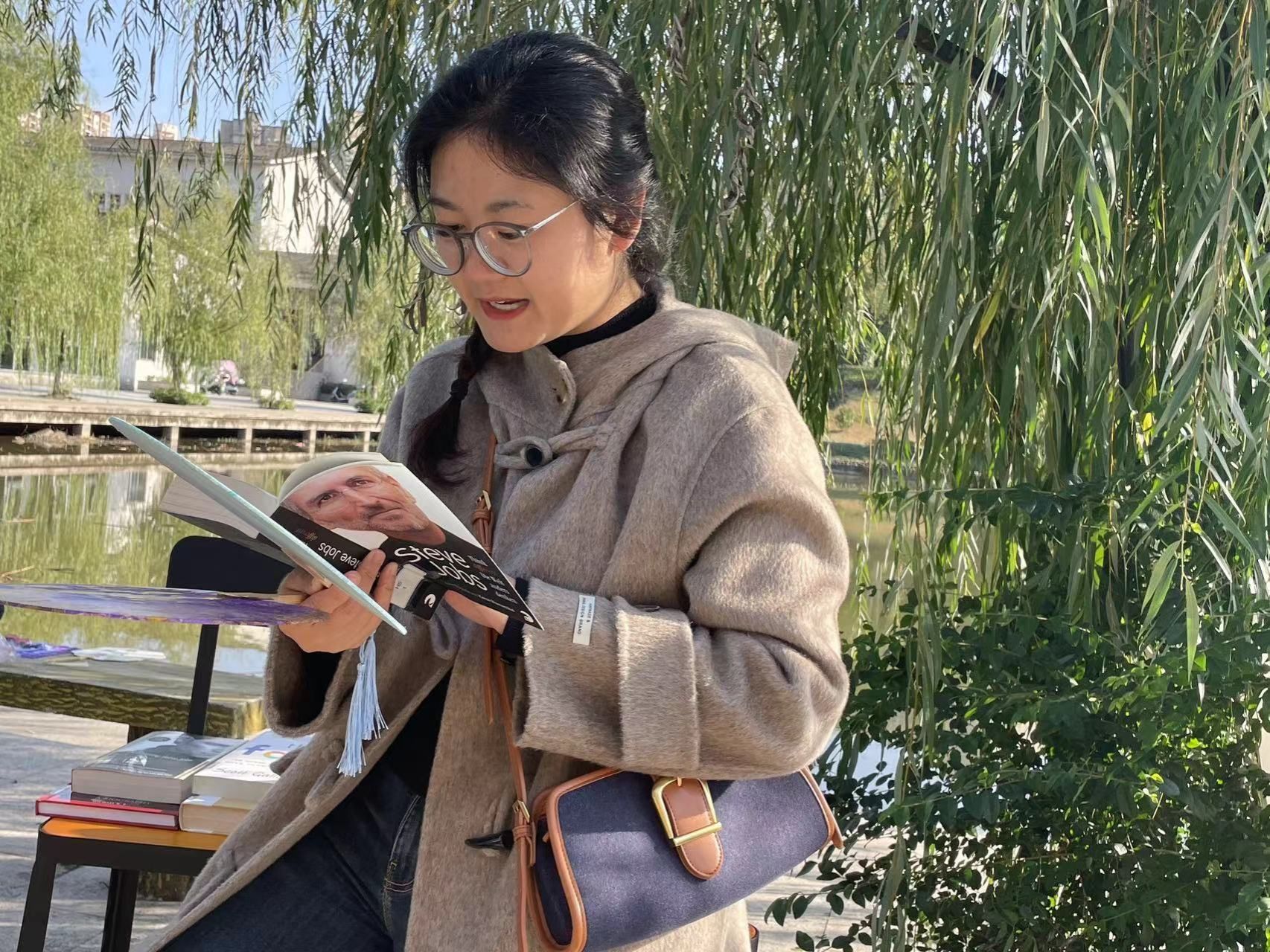 教师诵读大咖传记,现场由工作人员进行拍摄。读书是我们言传身教的事业,书的魅力从古至今从不褪色。风声雨声读书声声声入耳,家事国事天下事事关心。校园中有读大咖传记的传承,更有各位老师的引领。英文德文都是语文,朗朗读书声,萦绕耳旁边。朗读既是老师应有之本领,也颇具语言诵读之乐趣。