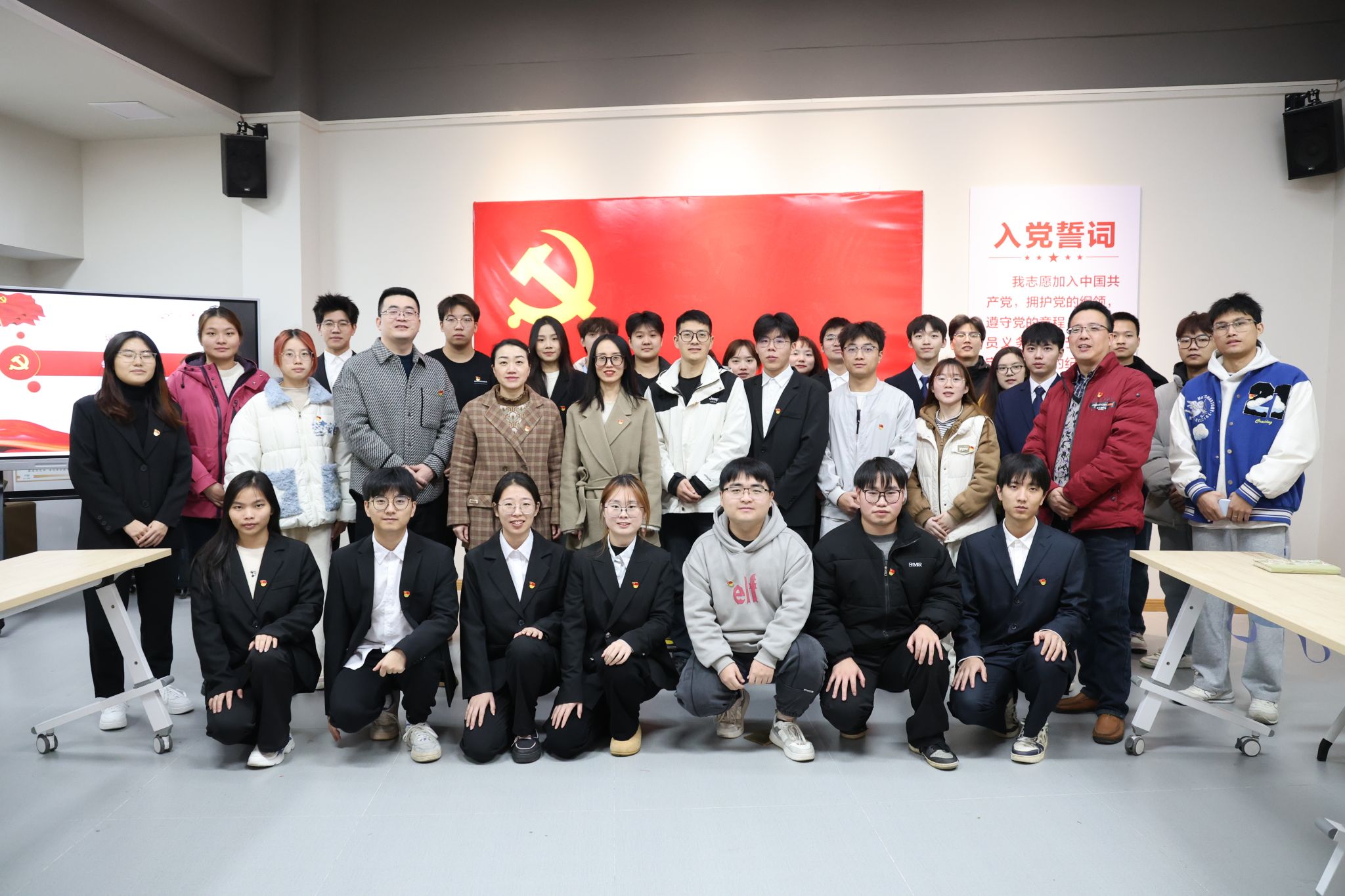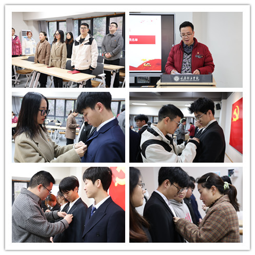 随后,庄严的《国际歌》响彻会场,激发着每一位党员同志的爱国情怀和奋斗精神。杨青松宣读新吸收的预备党员名单后,新党员们满怀激动与自豪依次上台。党总支书记李文娟教授带领参会的党总支委员为新党员庄重地佩戴党员,这一举动不仅象征着他们正式成为中国共产党的一员,更承载着党组织对新党员们的期望与嘱托。