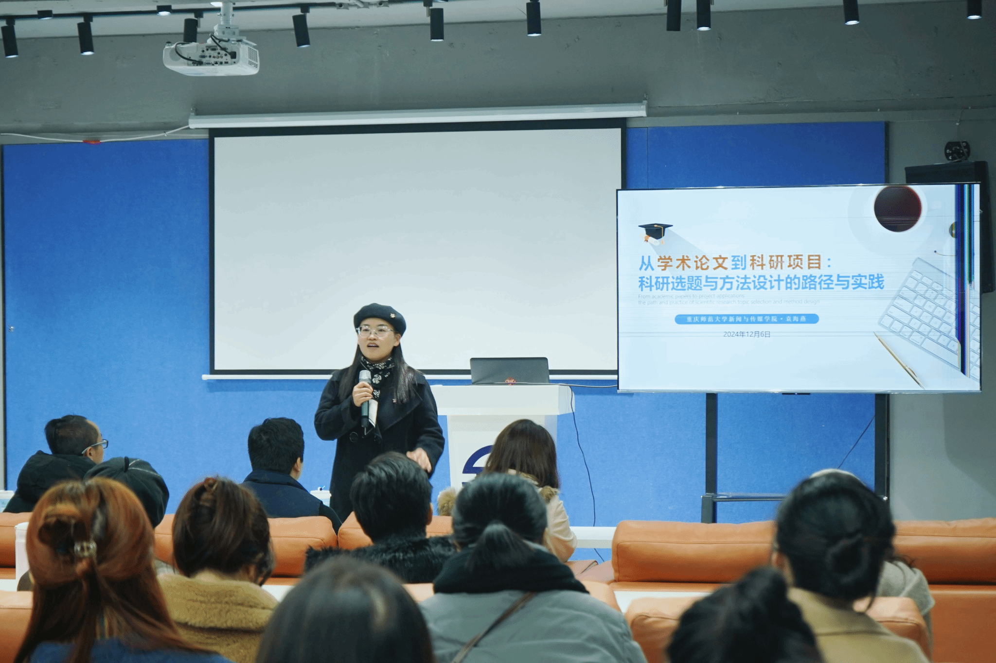 为提升教师们的教科研论文撰写能力和教科研选题水平,2024年12月6日,重庆移通学院艺术传媒学院特邀学者袁海燕博士为全体教师带来了一场题为《从学术论文到科研项目:科研选题与方法设计的路径与实验》的专题讲座。本次讲座由重庆移通学院艺术传媒学院副院长张梅主持,艺术传媒学院全体教师参与。