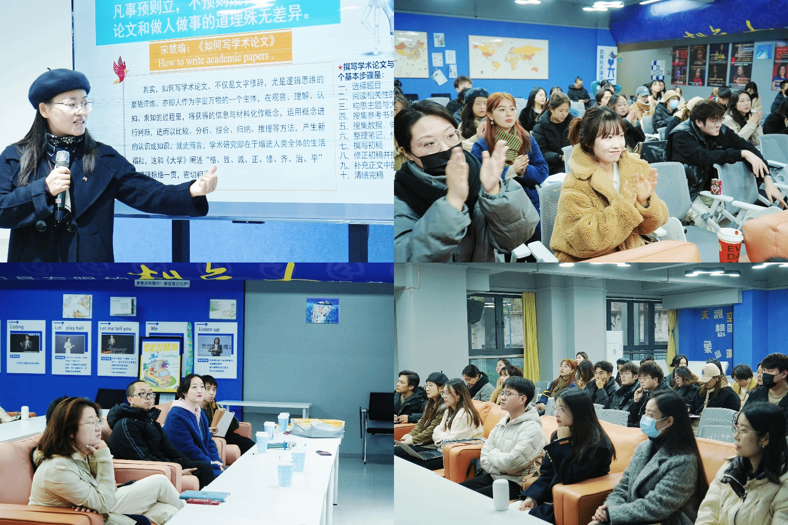 讲座伊始,袁海燕博士首先围绕“如何选题”这一核心议题展开讲解。她以宋楚瑜的《如何写学术论文》为起点,详细阐述了撰写学术论文与研究报告的基本步骤,帮助教师们理解并掌握科学选题的关键技巧。袁海燕博士强调,选题不仅要具备创新性,还要紧密结合实际问题和研究背景,确保研究的现实意义和应用价值。