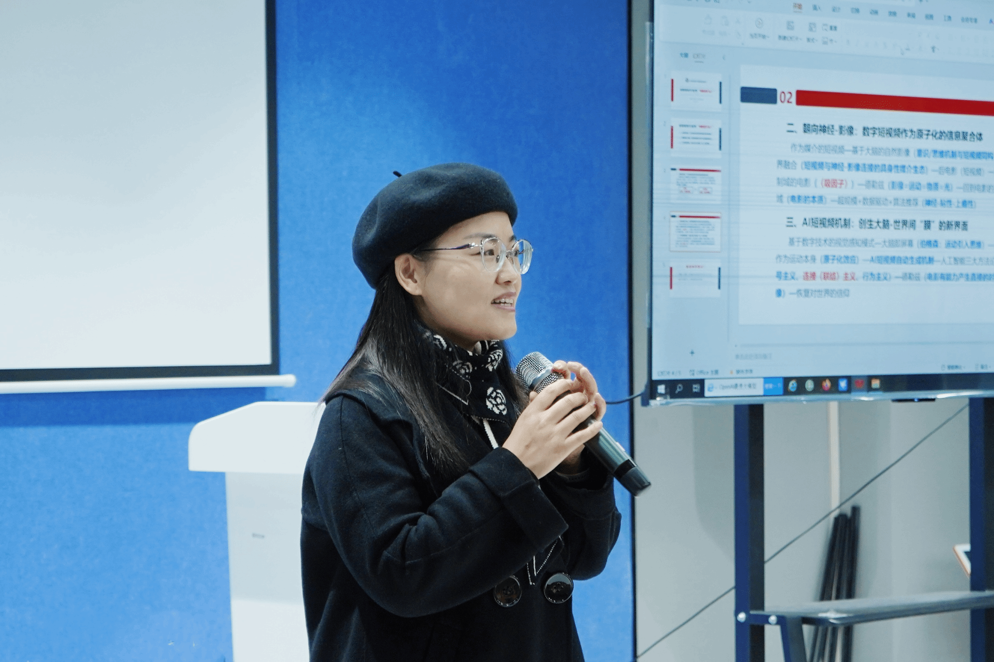 在谈及使用理论的原则时,博士强调了条件原则、情感原则和价值原则的重要性,并特别指出,人文社科类学者在写论文时切忌生搬硬套理论,应从问题(现象)出发,以理论为辅助,使研究更加贴近实际、具有深度。为了加深对这一论点的理解,袁博士还分享了自己的研究课题《短视频时代重思:“ 电影是什么 ”》,并推荐了著名电影理论家德勒兹和朗西埃的著作,为教师们打开了电影研究的新视角。