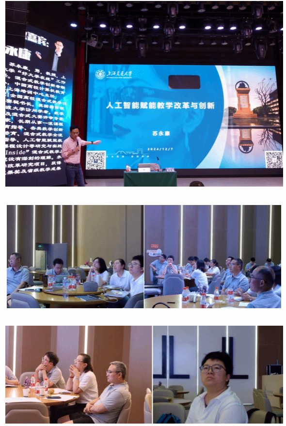 12月7日上午,上海交通大学知名教授苏永康带来了“人工智能赋能教学创新及混合式教学创新路径”专题讲座。他深入剖析了数字化转型对教育的影响,探讨了AI如何为教育注入新活力,并强调了提升教师数字素养的重要性。苏教授还着重介绍了混合式学习的核心要素,鼓励教师应从知识点背后的逻辑与方法出发,培养学生的提问能力,推动学生从被动学习向主动学习转变。
