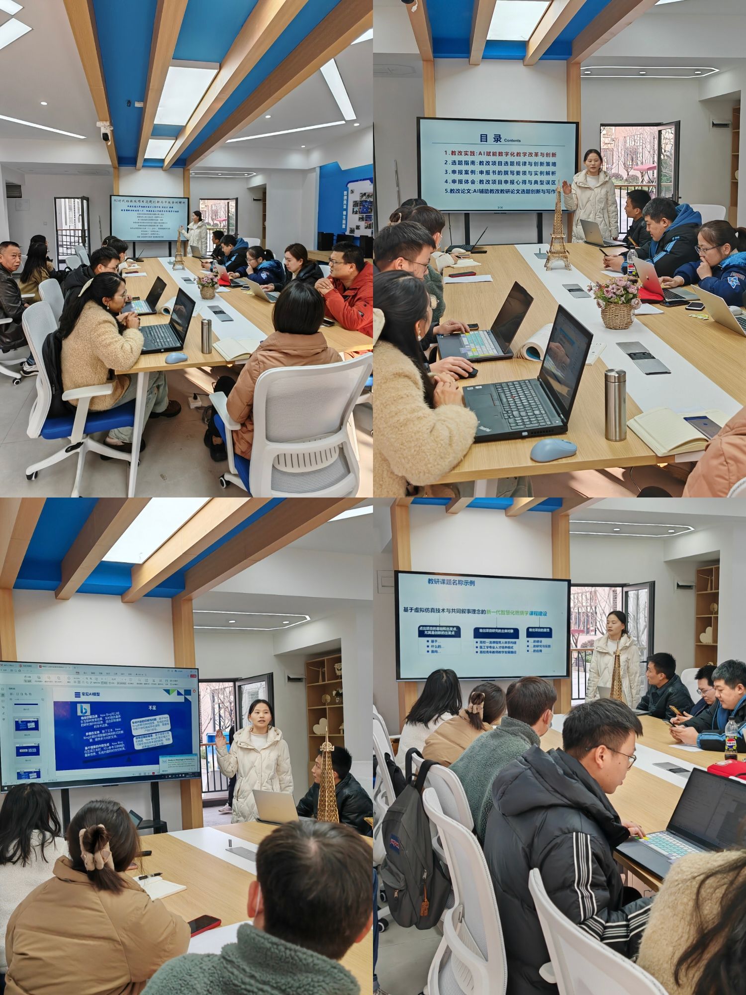 最后,姚昕老师分享了她在北京参加的“AI赋能数字教学深度实训工作坊”的培训内容。姚老师详尽阐述了AI技术在教育教学领域的广泛应用,并分享了此次培训过程中的个人心得。