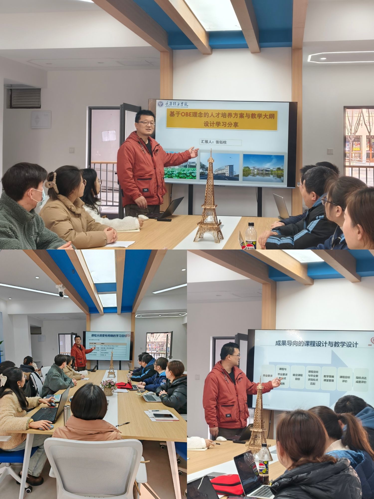 12月11日下午在松格书院智能制造创新中心开展了第二场分享交流会。首先,张钰柱老师分享了他在深圳参加的“基于OBE理念的人才培养方案与教学大纲设计实操工作坊”的培训内容。张老师的分享围绕OBE理念下的多个关键领域展开,包括学生学习成果确定与多元评价体系构建、人才培养方案设计与修订、高水平教学大纲设计以及课程考核评价设计等。