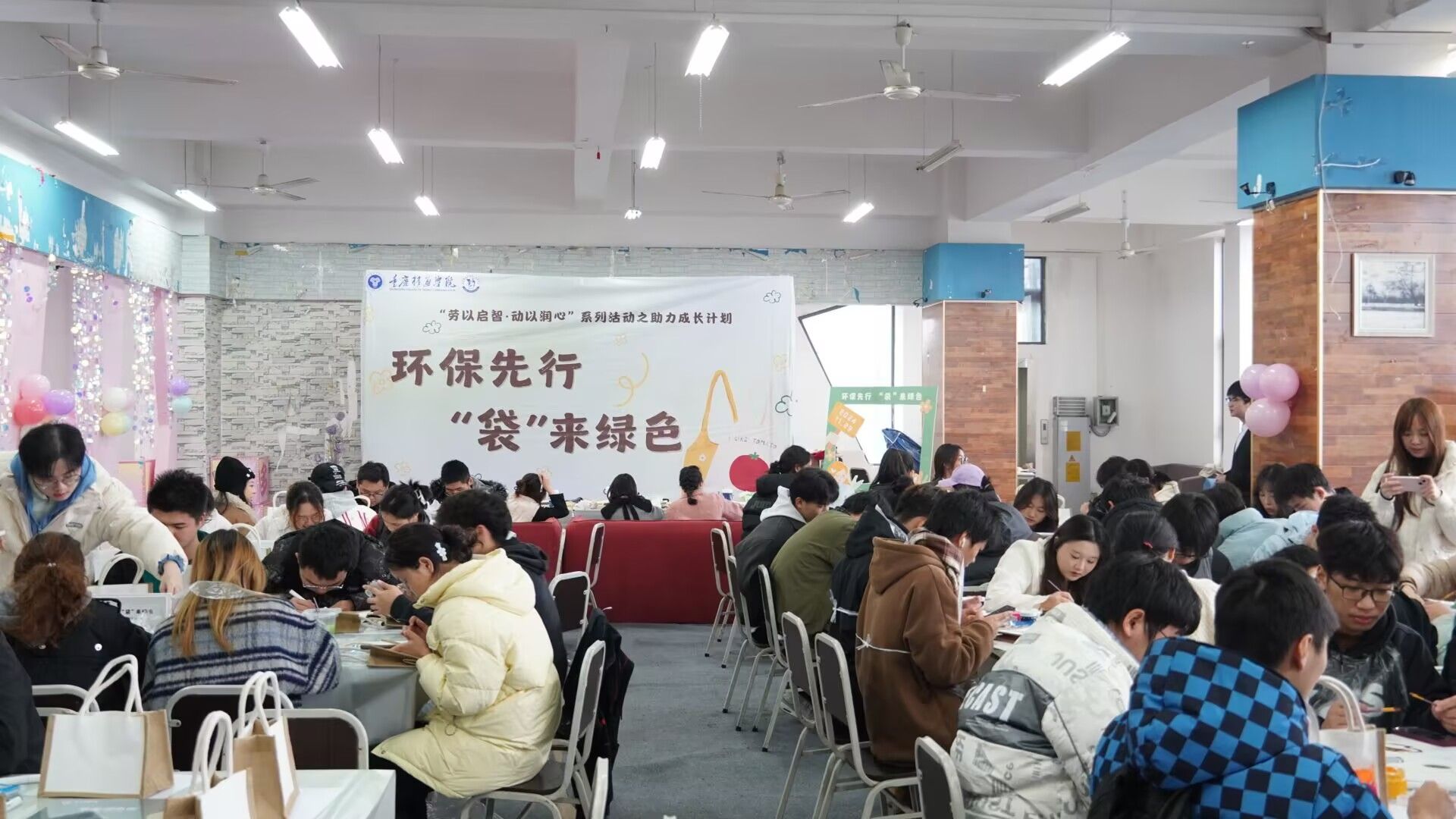 以“环保、绿色、志愿”为活动出发点,11月30日,“环保先行,‘袋’来绿色”在学生社团管理中心成功开展,同学们紧密合作,发挥创意将普通环保袋变身为兼具趣味与韵味的艺术品,不仅锻炼了动手能力和审美,更让环保理念深入人心,展现了关爱地球的责任与行动。