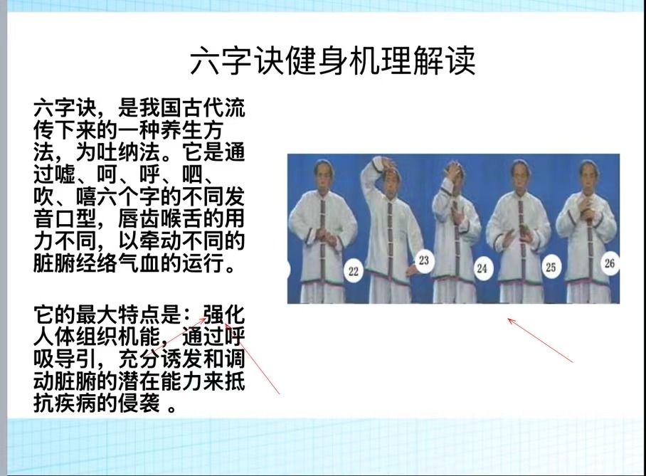 随后陈教授通过八段锦、六字诀以及简单的拍打法向竞技体育中心的老师以及同学们传递了种类丰富、通俗易懂的传统体育养生知识。