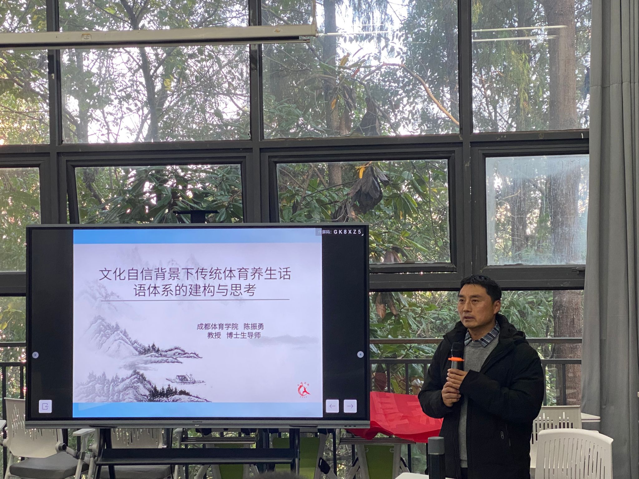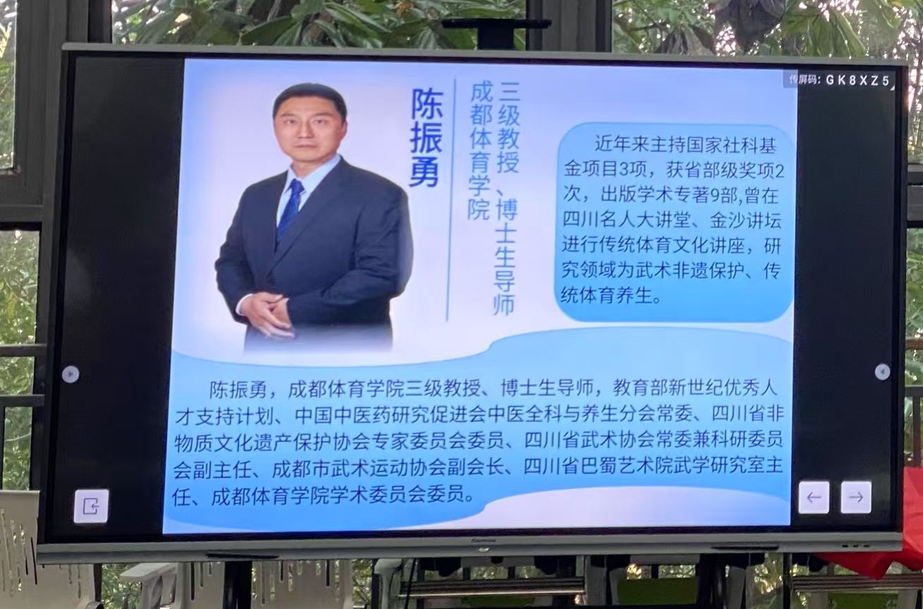 11月27日,成都体育学院陈振勇教授来到我校竞技体育中心开展健康健身养身讲座。
