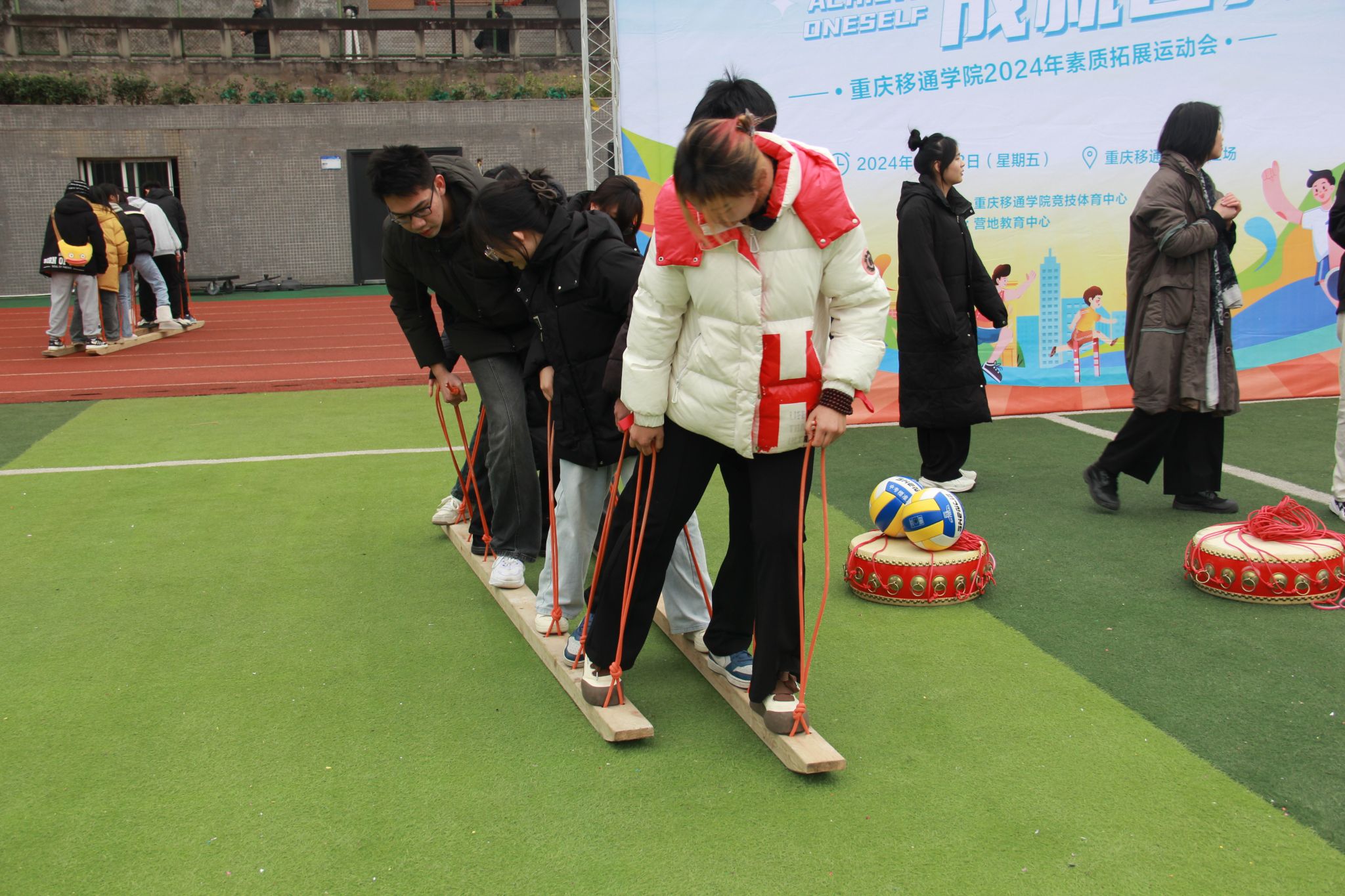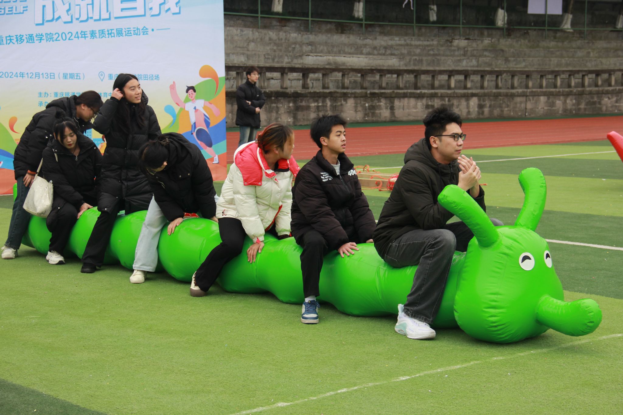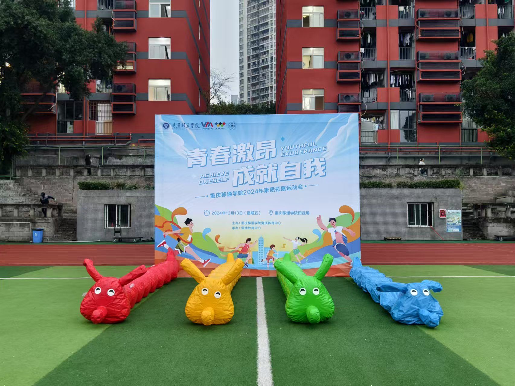 2024年12月13日下午,重庆移通学院田径场洋溢着欢声笑语,一场以“青春激昂,成就自我”为主题的素质拓展运动会在这里热烈举行。