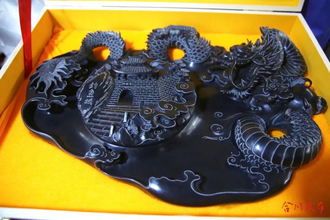 嘉陵江石精雕琢,钓鱼城下砚问世。合川峡砚,又称墨玉宝砚等,采用重庆合川钓鱼城下嘉陵江沥濞峡段的天然峡石精雕细琢而成,是一种古老的民间手工艺品。合川峡砚作为巴渝三大名砚之首,于2007年与合川桃片一同被收录入重庆市第一批非物质文化遗产名录。