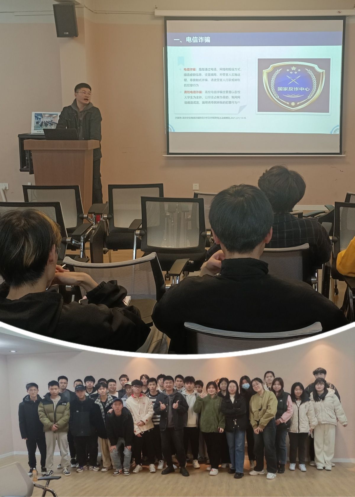 为增强大学生的安全意识,进一步有效引导学生树立维护权益、防范诈骗的意识,异科导师张旭老师组织人工智能4-5班异科学生开展防范电信诈骗培训会,张老师通过什么是电信诈骗、电信诈骗的演变、常见的诈骗手法及防范措施、电信诈骗安全防范小结等四个方面来展开阐述电信诈骗,列举了在校大学生常见被骗的案例,如:刷单返利、冒充电商物流客服、网络虚假交易、冒充亲戚朋友诈骗等。在讲述身边的真实案例之后,张老师为同学们分享了当遭遇网络诈骗时的应对之策,并对大学生校园网贷风险进行了安全警示教育,倡导异科学生量入为出,适度消费,理性消费。