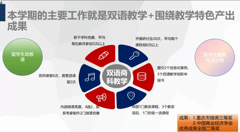 李魁梅副院长则介绍了重庆移通学院国际商学院的教学改革和国际化课程推广情况。她提到,学院课程已涵盖全校商科、双语课等多个模块,计划全校推广商科双语课程,以实现国际化教育目标。在教学成果方面,学院举办了多次教研会、信息化案例申报等活动,并利用留学生资源,搭建留学生混搭学习小组,促进国际交流。