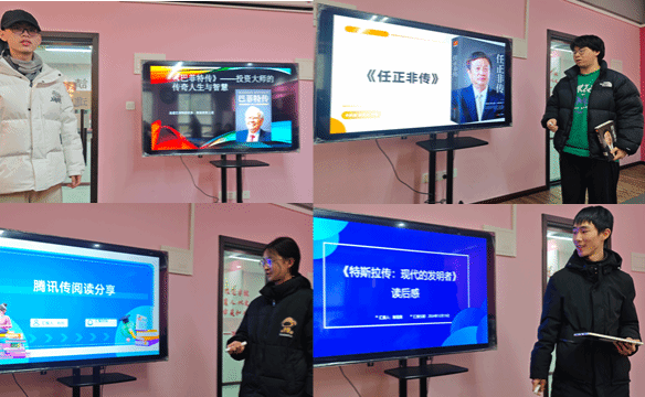 异科导师谭穗于12月19日带领电气工程及其自动化12班和13班的同学在爱莲书院多功能会议室举办了以“大咖共读,成长加速”为主题的大咖阅读分享活动。谭穗老师阐述了阅读对于个人成长、思维拓展的重要性,强调在当今多元发展的时代,从大咖的智慧结晶中汲取养分,如同为成长之路注入强劲动力。接着同学们分成小组对《雷军传》、《马云:未来已来》、《乔布斯传》、《巴菲特传》、《任正非传》、《腾讯传》、《特斯拉传:现代的发明者》7本大咖阅读书籍进行了深度分享。