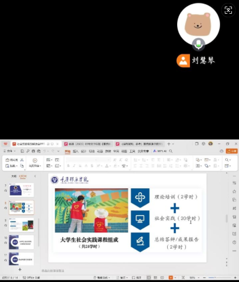 异科导师刘慧琴为学生带来了“解析大学生社会实践活动”线上研讨会,重点解读了学院最新发布的社会实践文件,明确实践要求和目标,强调了实践形式可选择暑期“三下乡”社会实践活动、“返家乡”社会实践活动和大学生社区实践计划,鼓励同学们积极参与社会实践活动,以丰富个人经历并完成学习任务。这不仅能锻炼个人能力,还能增进对社会的理解和责任感。