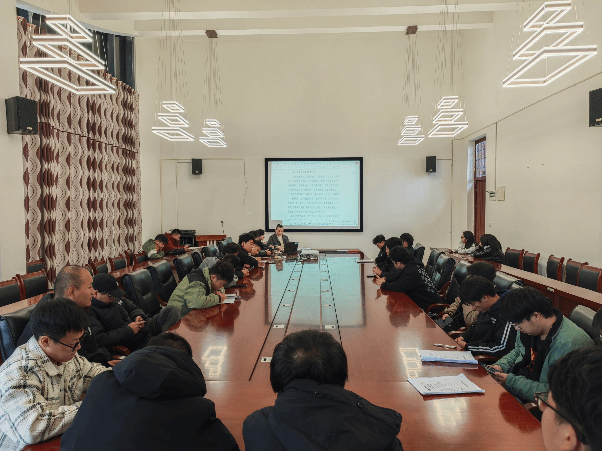 杨淑媛老师于12月7日在行者书院群梅若207为智能工程学院2024级轨道交通电气与控制专升本一班、二班共30名同学开展了《学生劳动教育档案》填写指导会。杨老师解读了重庆移通学院关于印发《新时代大学生劳动教育实施方案(试行)》的通知,详细讲解了开展劳动教育实践的指导思想、实施原则、育人目标、实施举措、组织实施等内容。