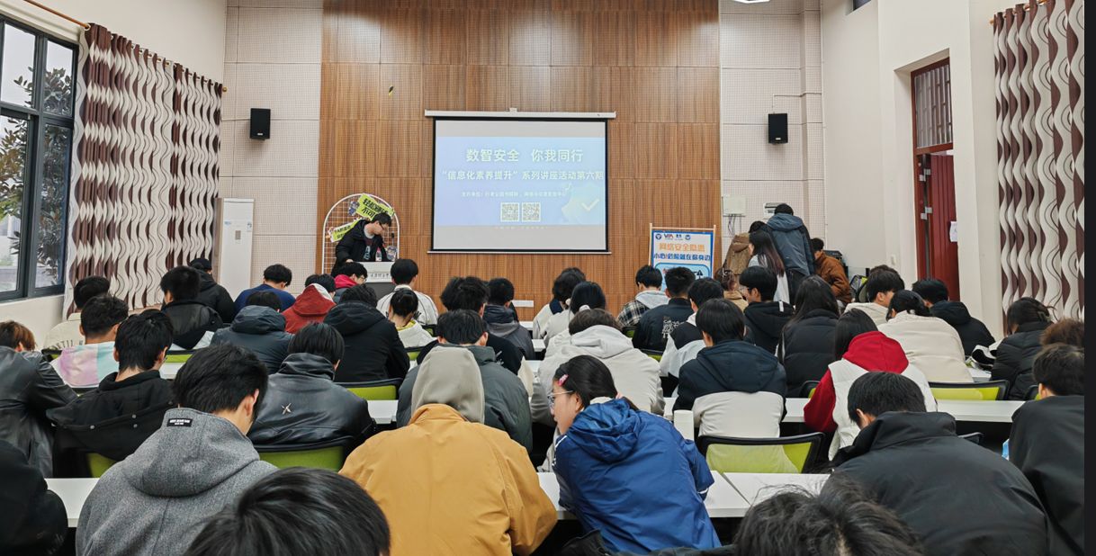 肖鹏老师组织学生积极参加由书院与网信联合举办的信息化素养提升系列活动,增强同学们网络安全防范意识。活动邀请了合川区公安局网络安全保卫支队的陈警官为大家宣讲网络安全知识。同时,带领同学们参观了学校宣传展览区域,通过图文并茂的展板向同学们展示数智安全的重要概念、常见威胁类型以及应对策略等内容。这些互动体验活动极大地提高了师生参与度,让同学们在实践中更好地掌握数智安全知识,在日常的数字信息交互过程中,时刻保持警惕,能够主动识别和规避潜在的安全风险,改变以往可能存在的忽视数智安全的观念和行为习惯。