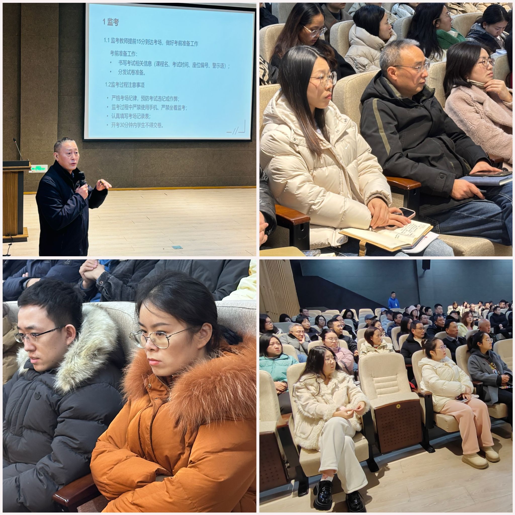 紧接着,唐院长就2024-2025学年第一学期期末考试工作展开了详细的部署,特别针对监考、阅卷和考试资料检查三个关键环节进行了全面且细致的阐述。唐院长强调了阅卷小组成员在阅卷全过程中的注意事项:阅卷前,仔细检查参考答案及评分细则和随机抽阅试卷,确保其正确性、合理性;阅卷中,务必严格遵循学校规定评阅,秉持认真细致的态度,反复复查,力求零错误;阅卷后,考试装袋材料中的平时成绩、试卷分析及课程教学总结等,需确保信息的准确性、合理性和真实性。唐院长指出,学院与教研室将双管齐下,对考试装袋材料实施严格检查,确保所有考试资料均符合学院规定,只有通过双重把关,资料方可入库,阅卷小组的工作才算圆满结束。