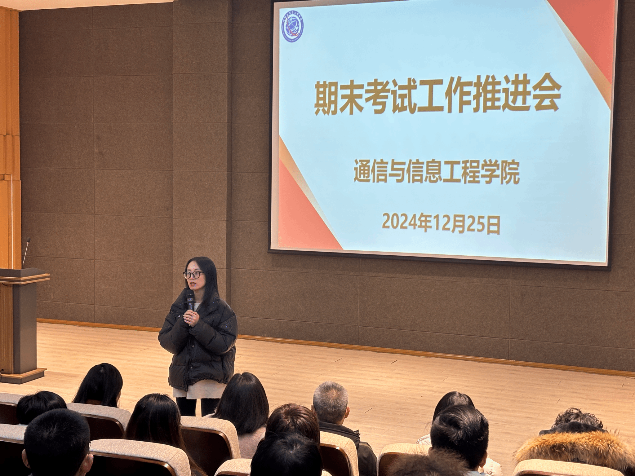 为进一步提高教学质量、规范教学管理,确保期末考试工作顺利进行,12月25日下午,通信与信息工程学院在六度空间无限多功能厅开展了期末考试工作推进会。此次会议由通信与信息工程学院教学副院长唐林建主持,院长李文娟和学院全体教师参加。