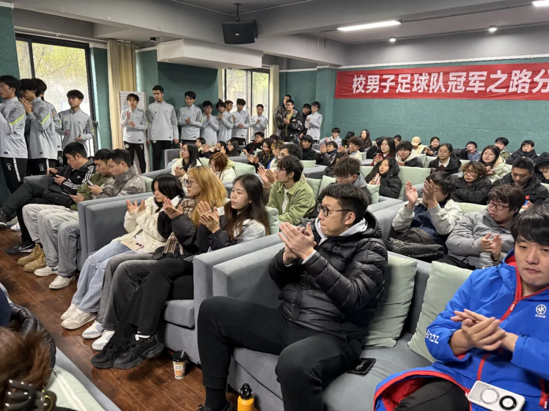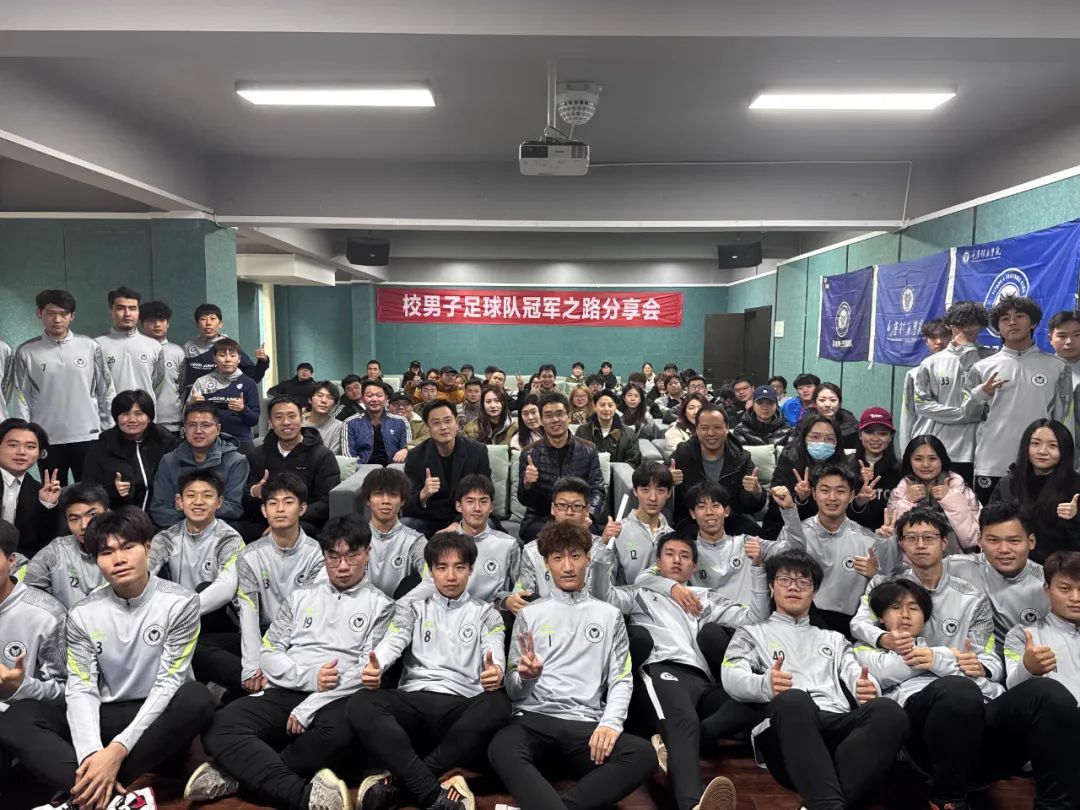 12月14日,重庆移通学院男子足球队夺冠后,学院组织夺冠交流会。活动播放比赛花絮与训练幕后视频,队员代表分享夺冠艰辛与感悟,强调团队合作。教练感谢各方支持,期望队员保持拼搏精神。副校长赞扬球队展现体育精神,肯定其对完满教育的推动。他还特别提到,这次胜利不仅仅是足球场上的成功,更是体现了移通男足的精神,也是完满教育在竞技体育方面走出的又一成功一步。