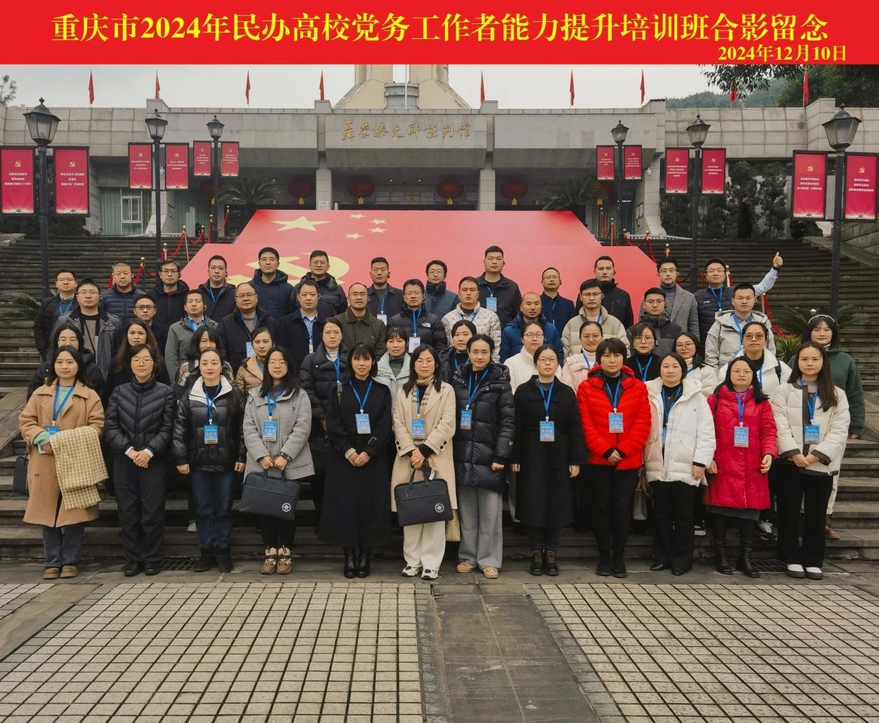 12月8日- 12月14日,在重庆文理学院举办民办高校党务工作者能力提升培训班,重庆移通学院相关人员全场参训。培训内容丰富,含专题讲座、实地考察等。专家学者解读政策、传授方法,学员参观红色与廉政教育基地。学习中积极互动研讨。结业典礼上表彰优秀学员,学员收获颇丰,将所学用于工作,推动民办高校党建工作提升。