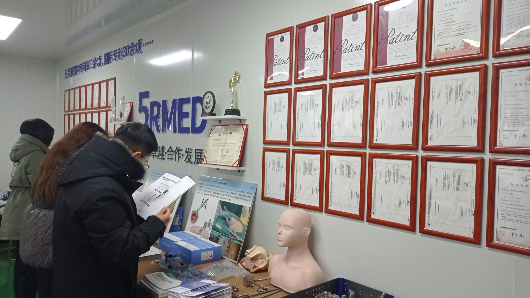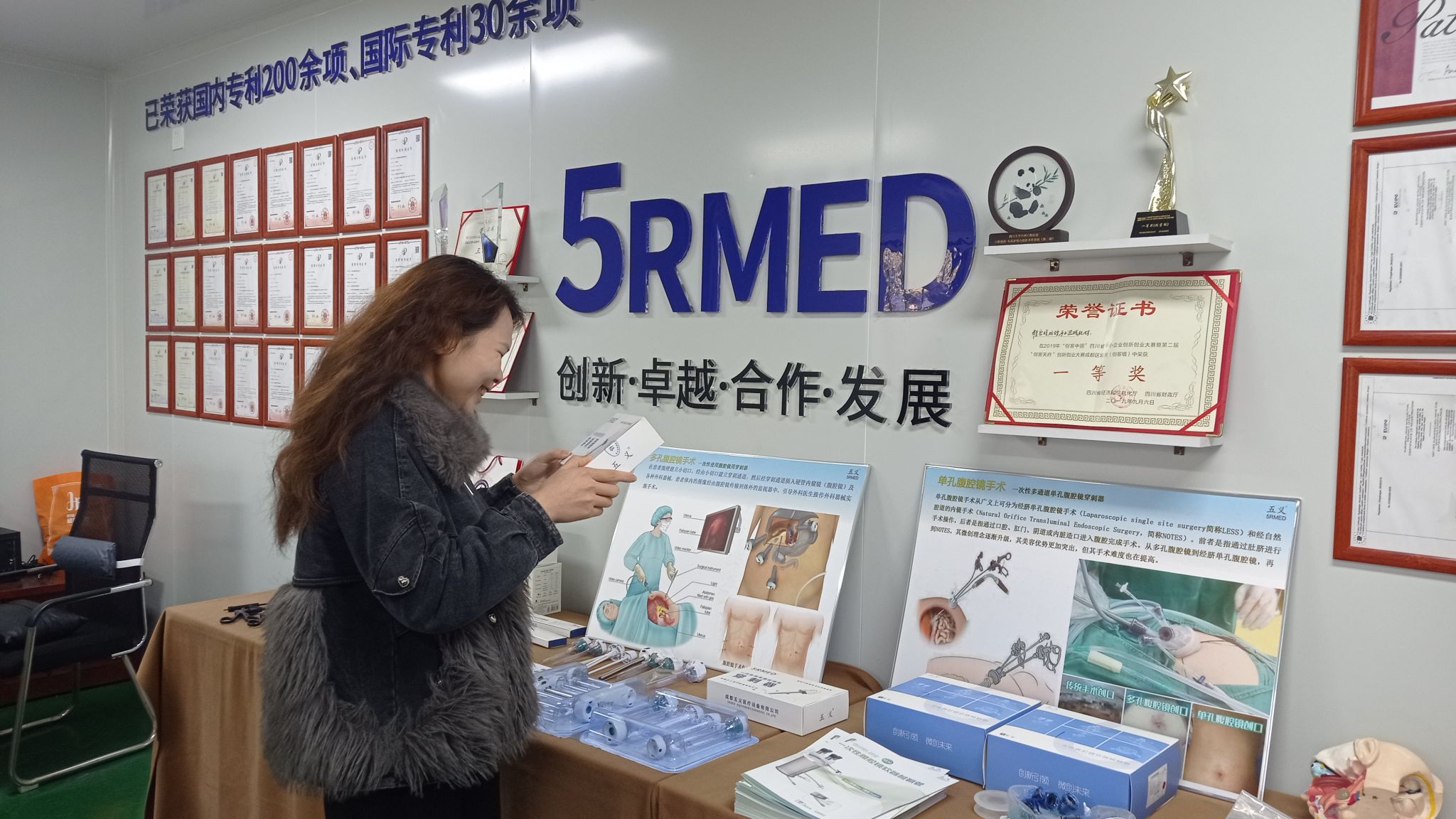 成都五义医疗设备有限公司徐经理,带领到访老师参观了公司实验室、产品室、工作室等,同时介绍了公司产品。公司已经形成了 4 大系列产品:一次性穿刺器、一次性剪钳手术器械、超声刀系列、头颈外科成套手术器械系列产品,预计两年内取得 10 个国内二类、三类注册证,5 个 CE 注册证。公司后续将集合各种创新手段和资源,建立校企联合实验室、省市级研发中心,促进西部地区有竞争力的精密医疗器械研发、制造体系的建立,吸引外来人才就业,由此带动相关配套产业特别是上下游产业入驻园区,形成成都市乃至四川省精密医疗器械产业群,推动我省精密医疗器械产业的发展。