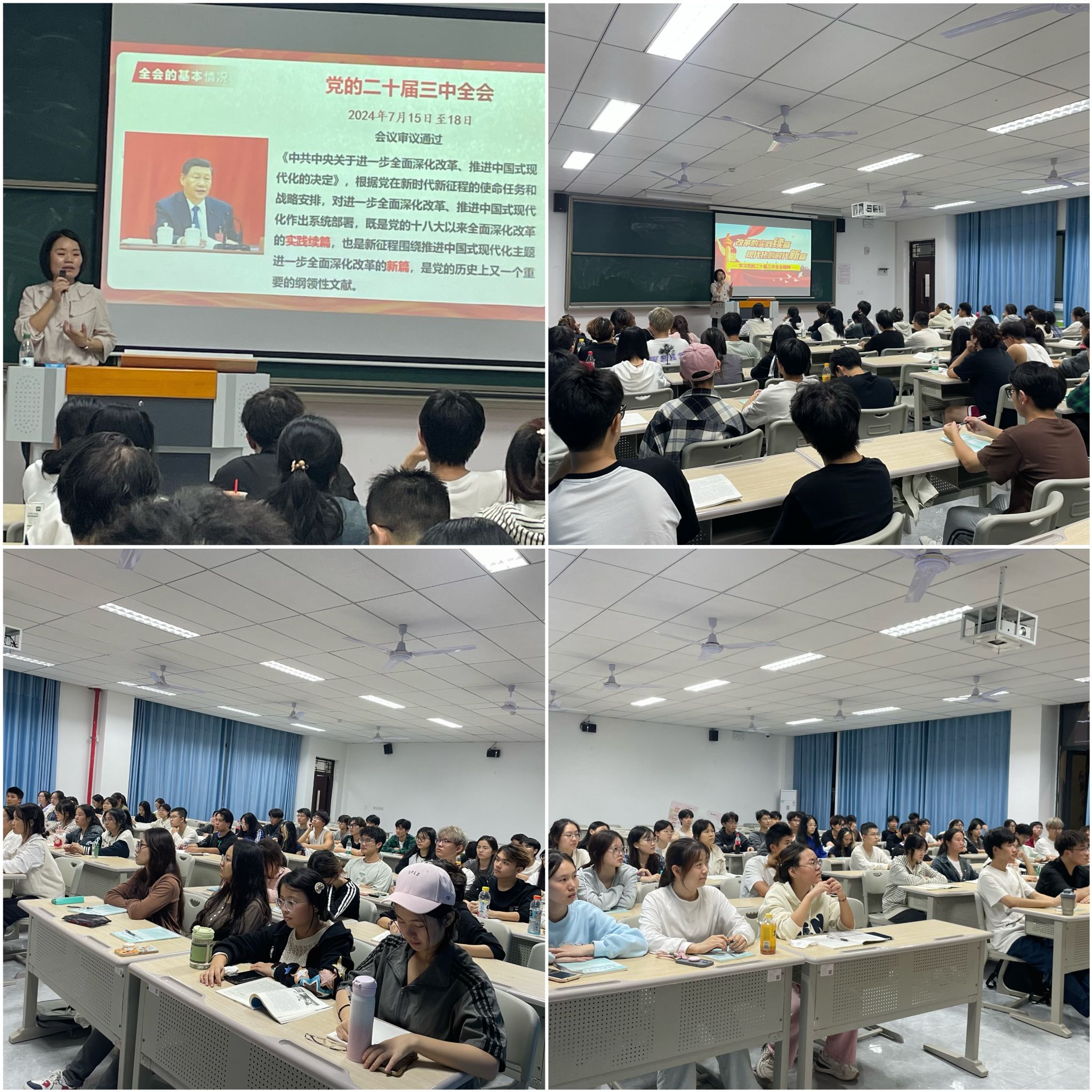 10月15日,副校长李文豹为我校2023级软件工程专升本的同学们带来了一堂激荡心灵的思政课。李文豹副校长深入讲解了习近平总书记在二十届三中全会上的重要讲话精神,对《决定》提出的进一步全面深化改革重大举措进行了全面、准确、细致的解读,每一项举措都如同拼图的碎片,在他的讲解下逐渐拼凑成一幅清晰的改革蓝图,让同学们清晰地认识到改革的方向与重点。李文豹副校长还巧妙地将全会精神与重庆实际相结合,贯通学习习近平总书记对重庆改革工作的系列重要指示要求。本班为毕业班学生,李文豹副校长鼓励即将步入社会的同学们积极参与到重庆打造全面深化改革先行区的建设中,为奋力谱写中国式现代化重庆篇章贡献青春力量。