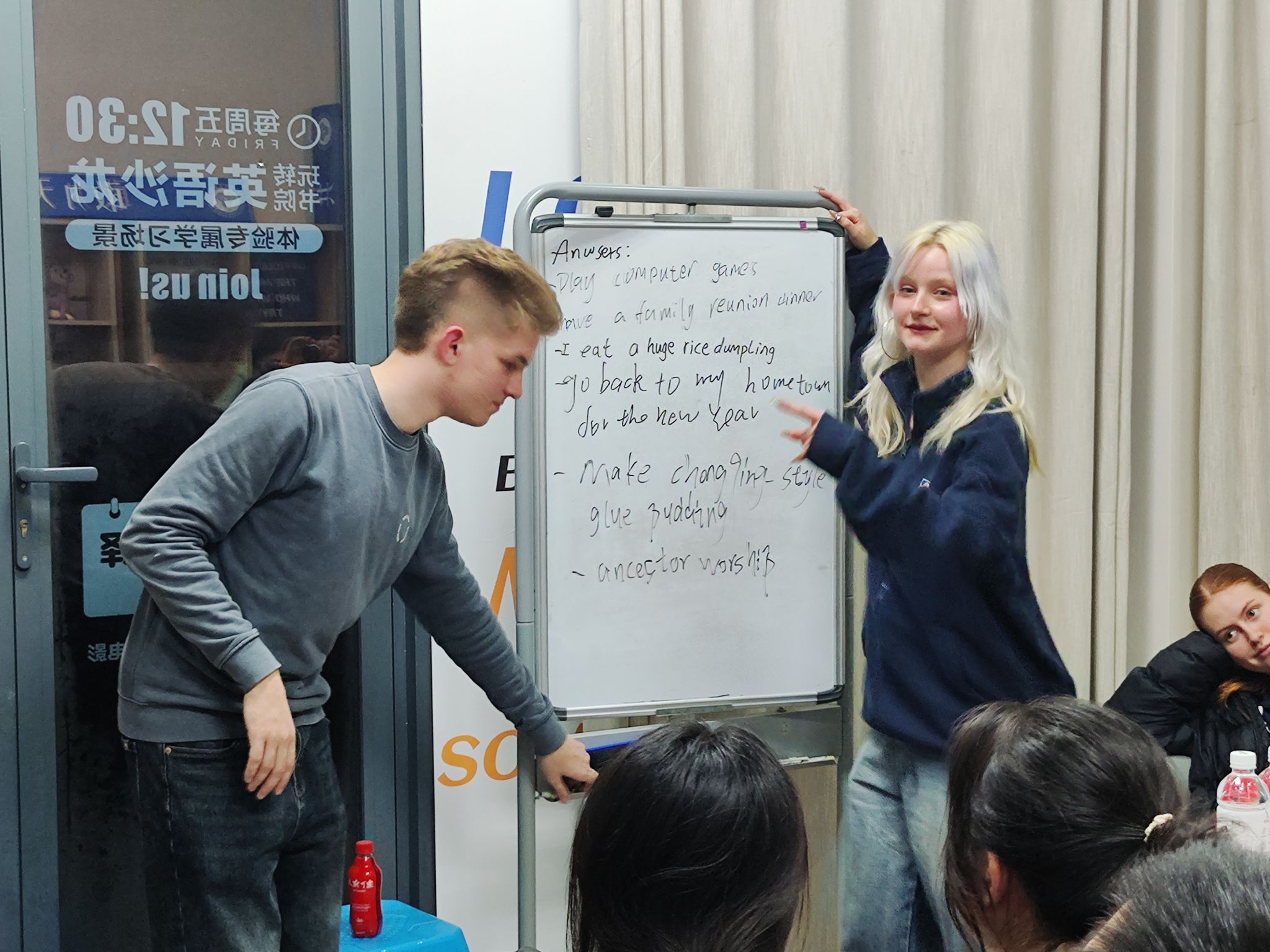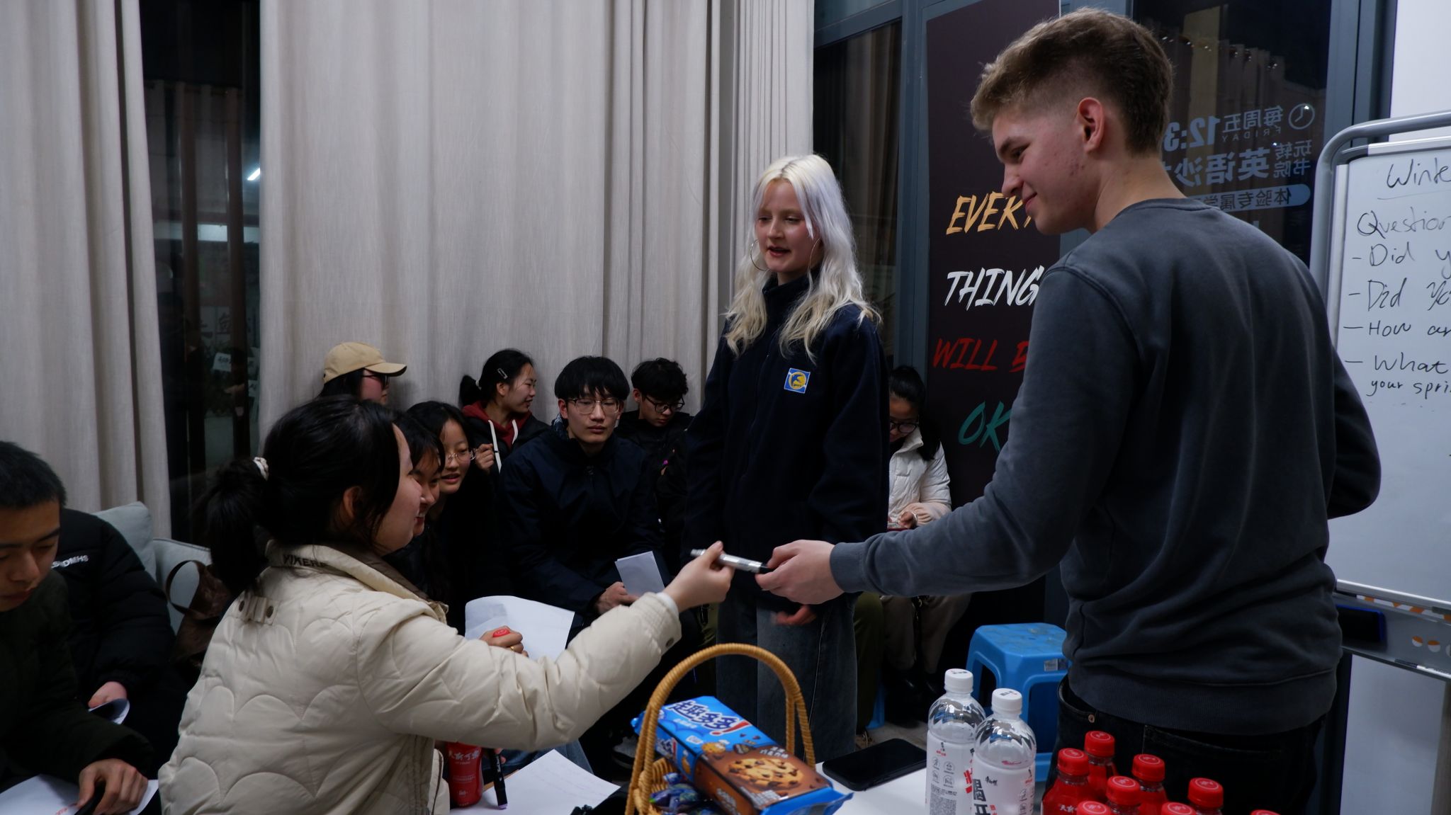 3月5日下午19:00,由国际商学院与国际教育学院、鱼城书院主办的英语角活动在鱼城书院英语角活动室圆满结束。本次活动以“寒假”为主题,特邀来自德国的18岁嘉宾Sarah董彦和Emil刘明杰与大家分享自己的寒假生活和德国的冬日文化与节日传统。活动现场气氛热烈,参与者们不仅学到了新知识,还通过互动交流提升了英语能力,度过了一个充实而愉快的下午。