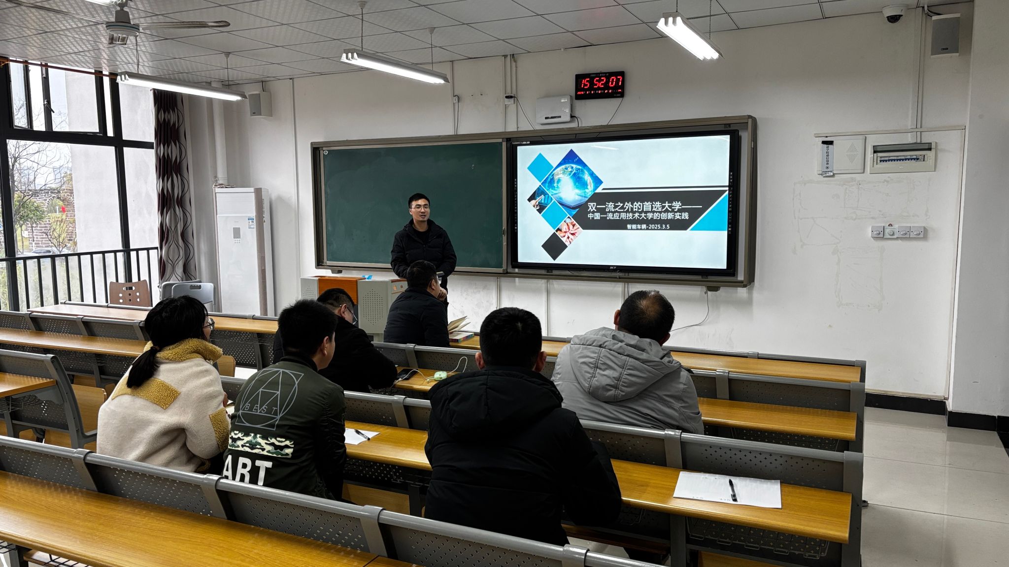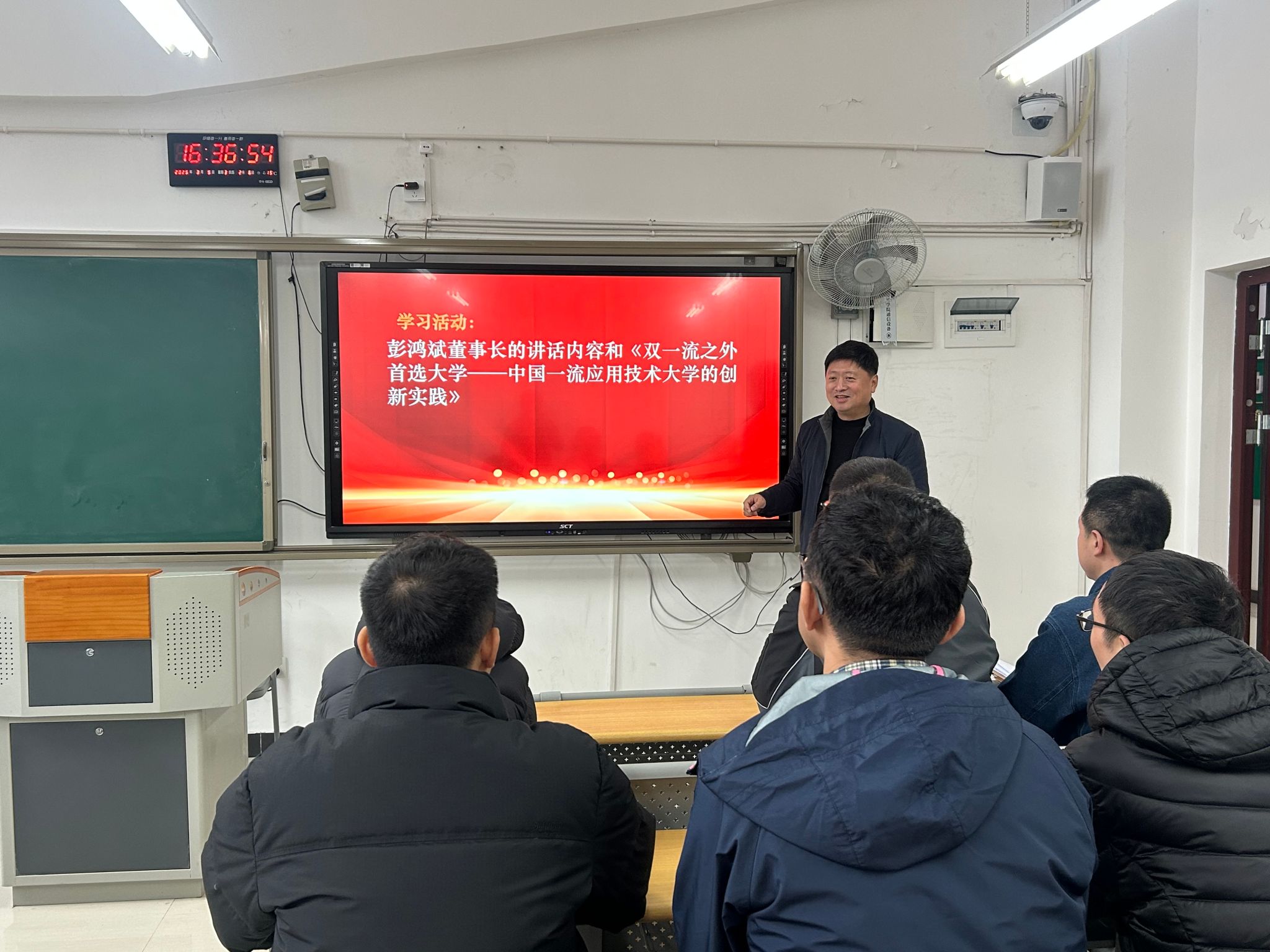 3月5日,智能工程学院智能交通教研室于竹逸A302集体学习彭鸿斌董事长讲话及《双一流之外的首选大学》一书。这次学习不仅加深了老师们对中国应用技术大学教育模式的理解,也对自身职业发展有了更清晰地认识。