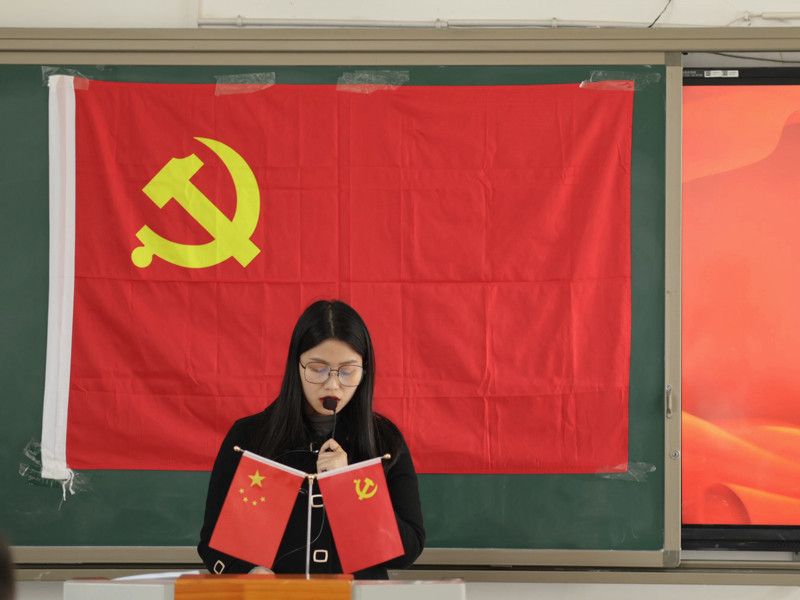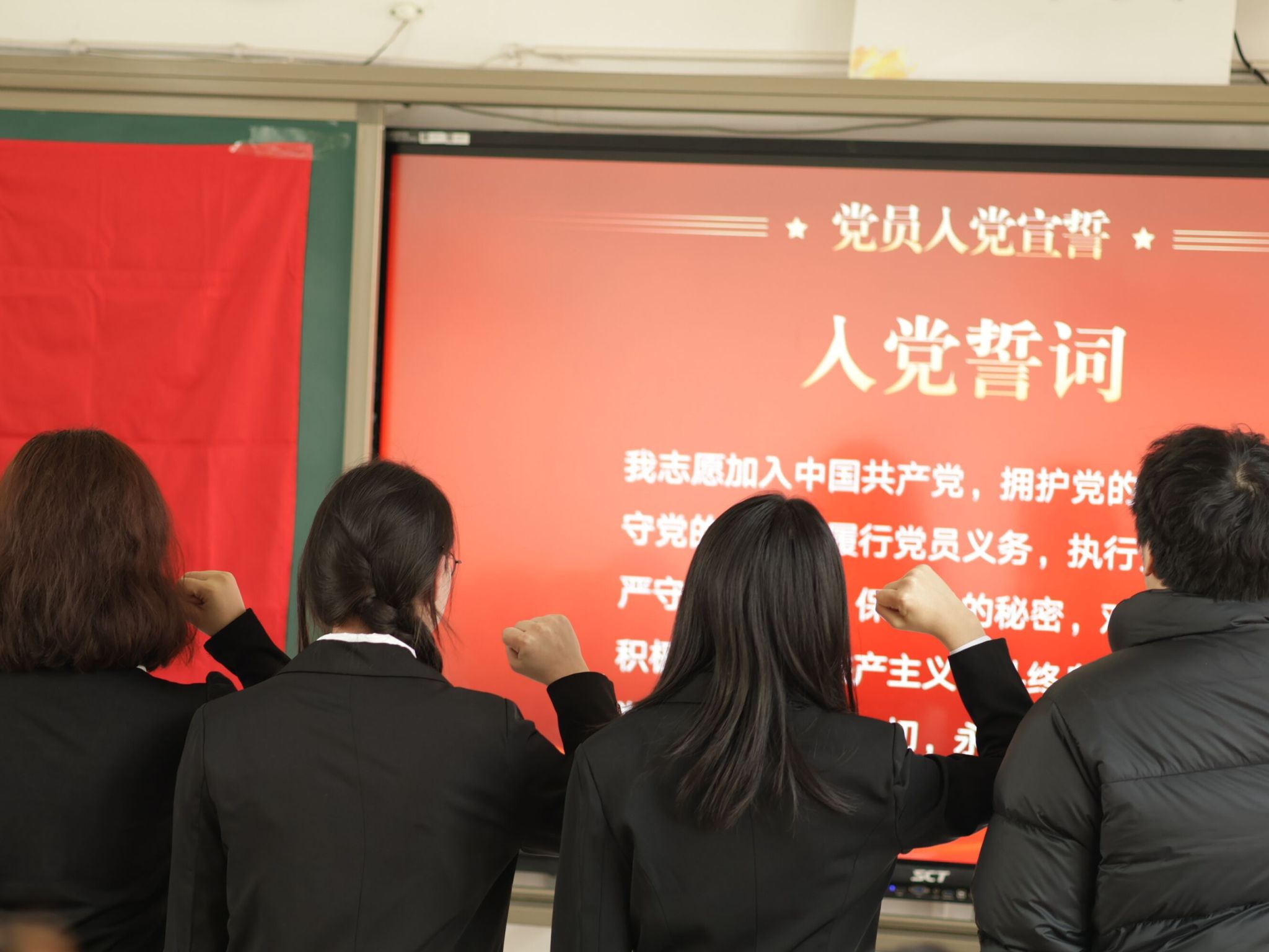 “我志愿加入中国共产党,拥护党的纲领,遵守党的章程……”在朱文杰同志的领誓下,4名新党员面向鲜红党旗庄严宣誓,字字铿锵的誓言回荡在会场,彰显着新时代青年党员的忠诚与担当。宣誓结束后,学生支部书记谭英姿同志寄语新党员:“转正是政治生命的新起点,希望你们牢记入党初心,在学思践悟中锤炼本领,在服务人民中践行使命。”