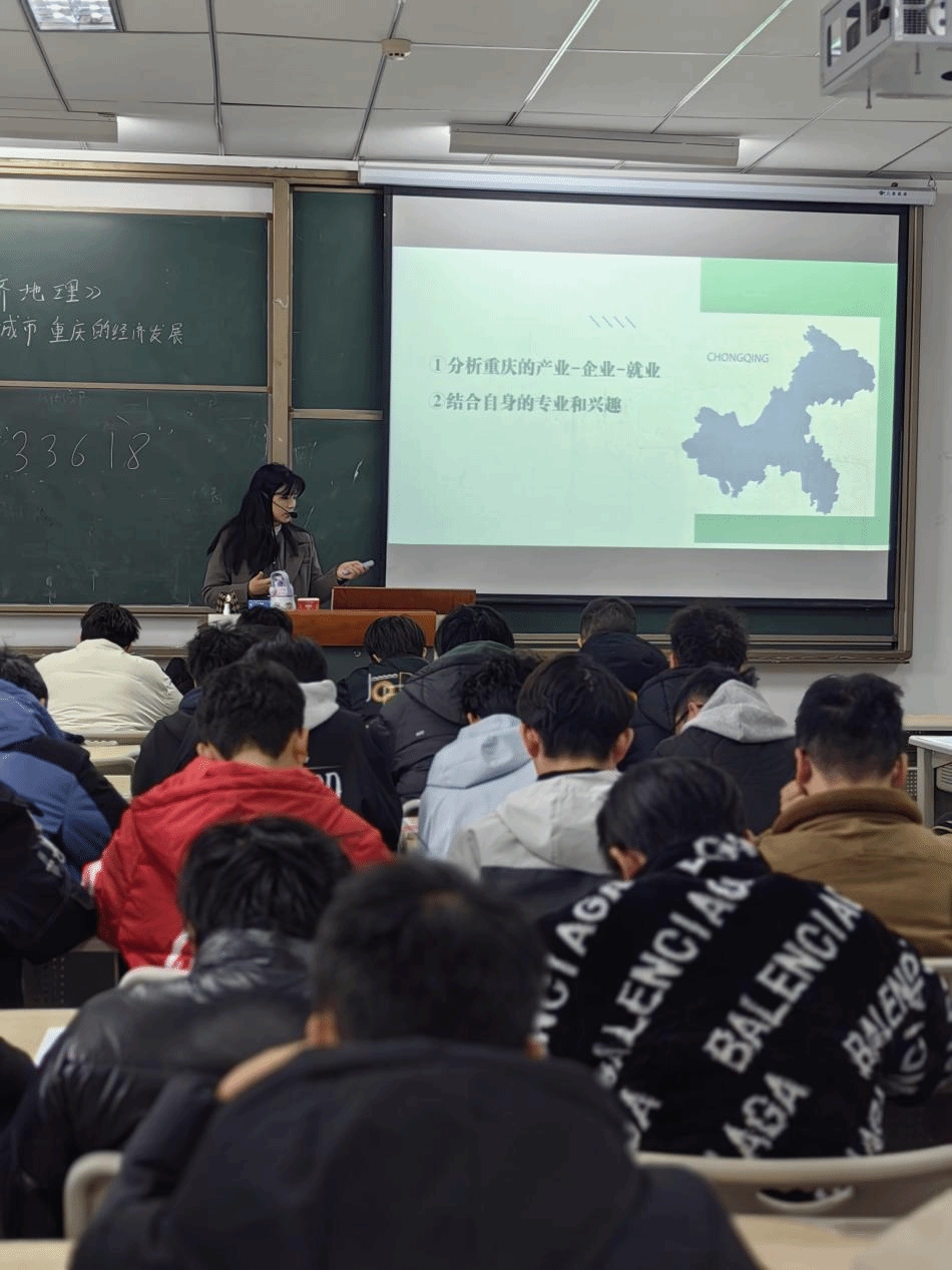 两位老师总结了将专业知识与城市产业趋势相结合的重要性。单旭燕老师强调,学生需要将个人的职业规划与重庆的区域发展战略相结合,找到适合自己的职业发展路径。罗菊老师则通过重庆的产业布局与人才需求,解析了在数字重庆建设发展中,学生职业规划与重庆的产业发展相结合的广阔前景。这种融合历史纵深与产业前沿的课程,不仅让学生对重庆的经济发展有了更深入地理解,也为他们的职业发展指明了方向。