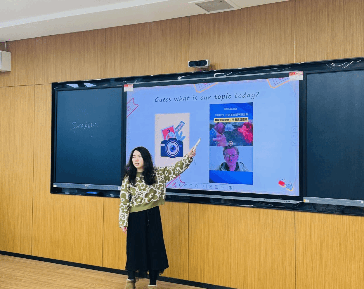 向觅老师结合中国影史刚诞生的票房冠军《哪吒2》讲解电影相关概念,锻炼口语问答的内部逻辑扩展能力,并鼓励学生进行有逻辑的表述,层层递进,通过对电影《哪吒 2》的讲解增强文化自信与民族自豪感。