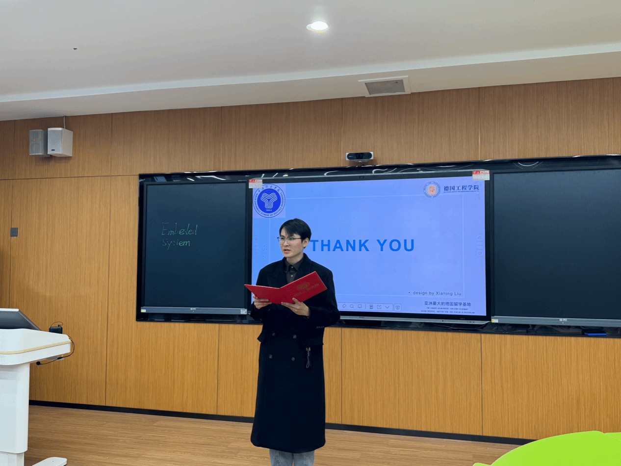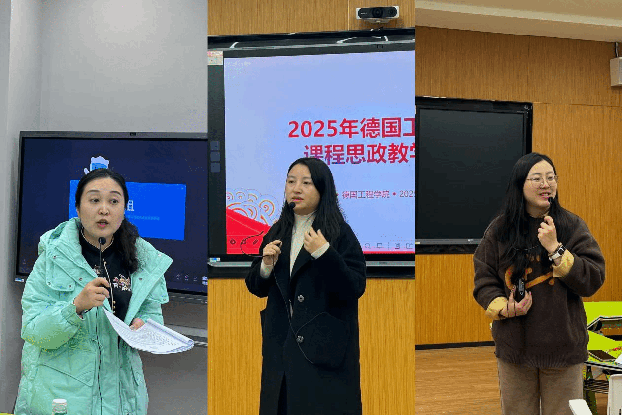 为了进一步推动课程思政建设,提升教师将专业知识与思政教育有机融合的能力,德国工程学院于3月5日在天空书院智慧教室302成功举办了一场别开生面的课程思政教学比赛。本次比赛由欧标德语教研室李晓锋老师担任主持,德国工程学院副院长谭劲秋副教授、马克思主义学院何林副教授和校级督导曹雪姣副教授担任评委。
