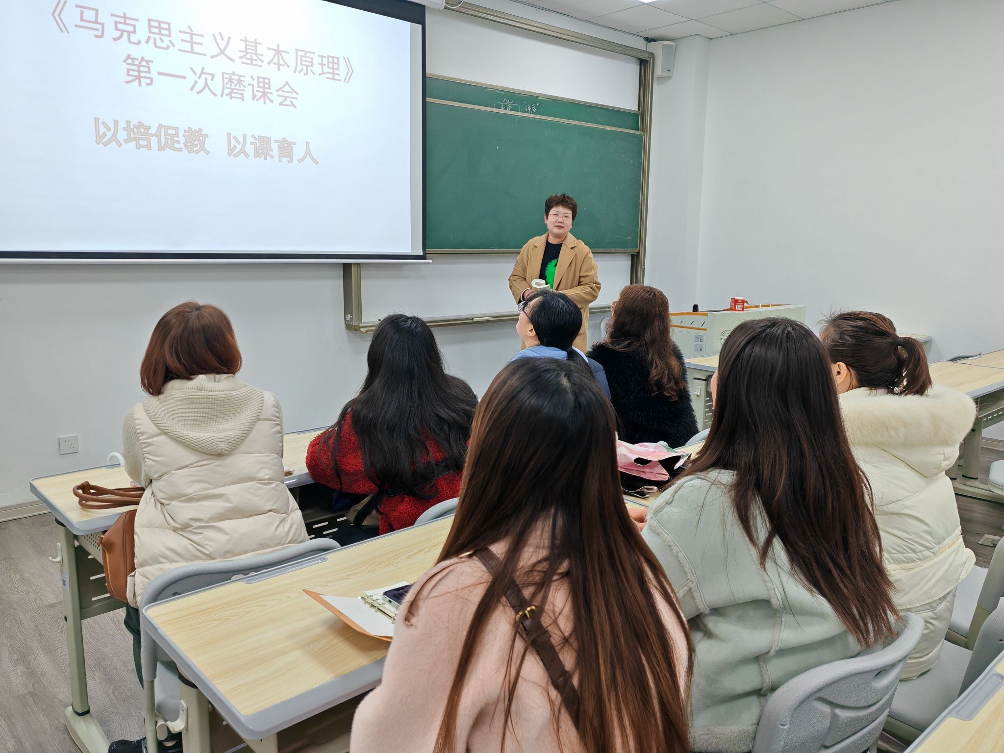 为深入贯彻落实《重庆移通学院教师磨课工作实施方案》移通[2024]391号文件要求,深化思政课堂教学改革,推动教学改革创新,全面提升我校思政课教师课堂教学水平和教学质量,扎实推进“靶向攻坚·课堂重构——《马克思主义基本原理》课程教学提质增效行动,3月5日下午15:00,马克思主义学院《马克思主义基本原理》课程组在4104教室召开首次集体磨课会。会议由课程负责人宋珊老师主持,以“以培促教 以课育人——教育部“原理”课程集体备课内容进课堂”为核心议题,通过“个人主讲+集中研讨”模式,聚焦教学痛点、深挖理论内核、重构课堂设计,为打造“有深度、有温度、有效度”的思政金课凝聚共识。