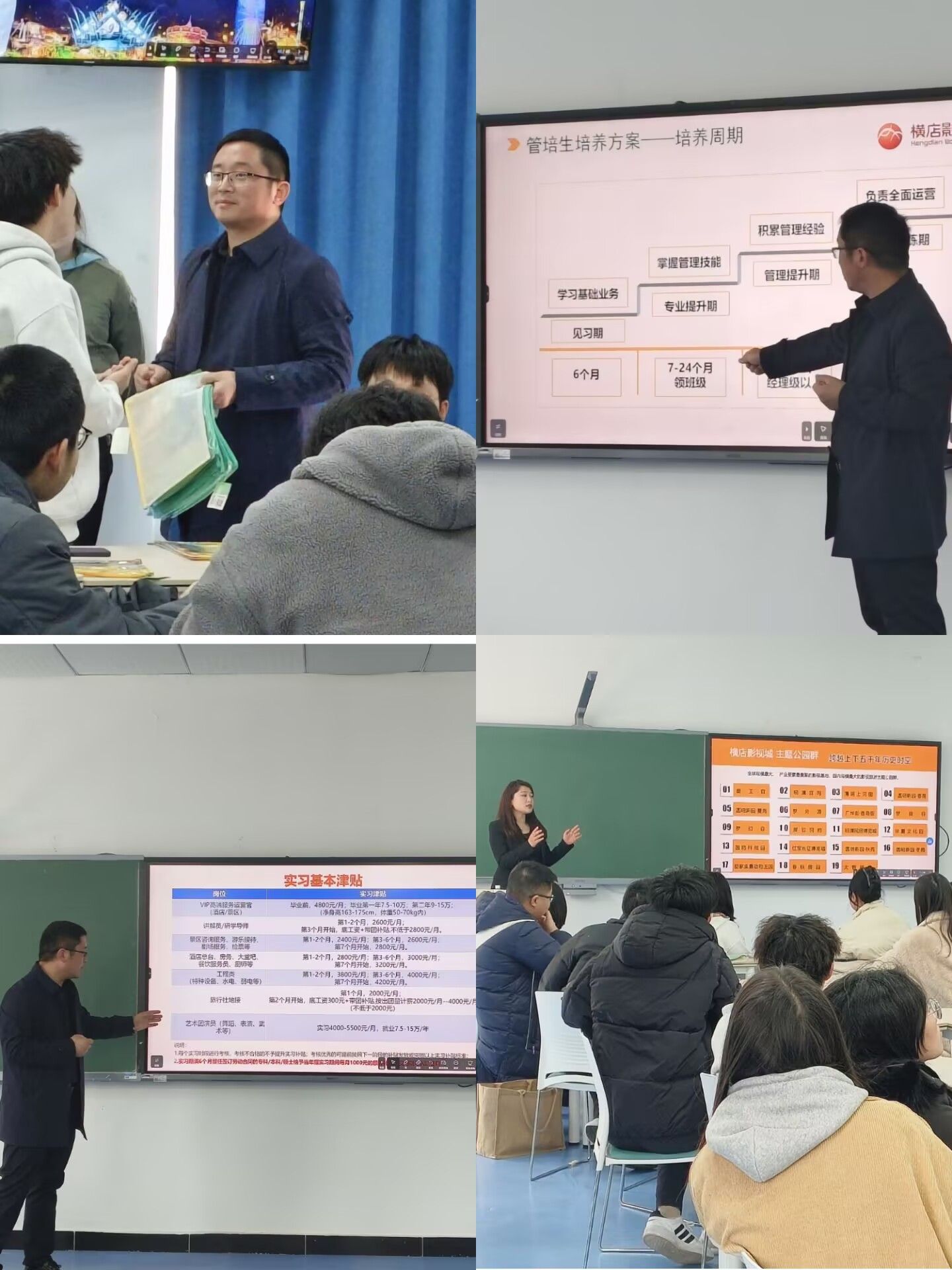 在活动的最后环节,李建杰老师详细介绍了横店影视城的工资待遇以及丰富的员工福利,涵盖了薪资结构、职业发展机会、食宿安排、培训体系等内容,让同学们对未来在相关行业的职业发展有了更清晰的规划。介绍结束后,进入提问环节,同学们踊跃发言,就实习机会、岗位要求、职业晋升等问题与李老师进行了深入交流,现场气氛热烈。