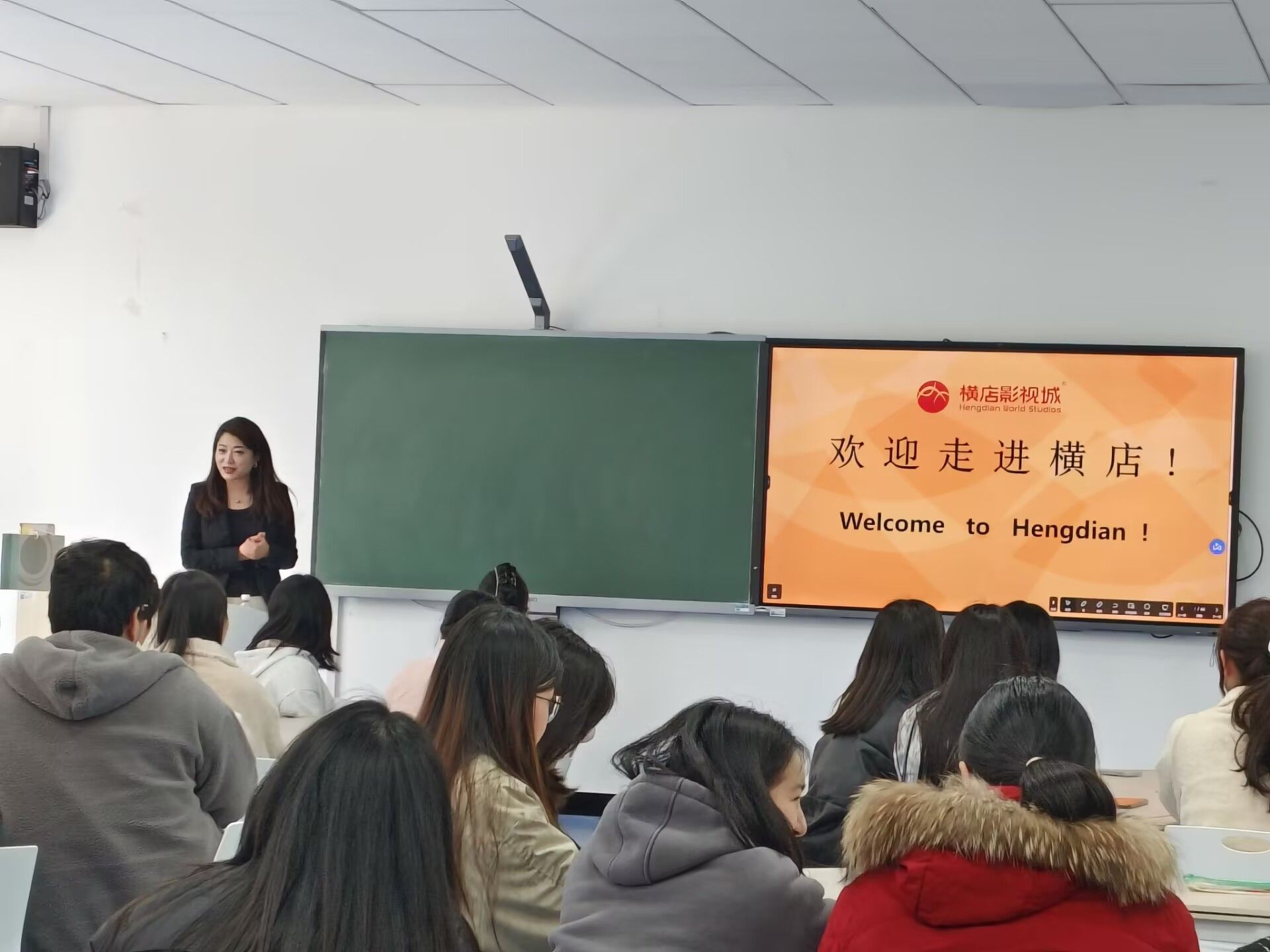 活动伊始,蒋明迪老师向同学们介绍了此次活动的主办方,并详细介绍了酒店商务产业学院和电影商务产业学院的专业内容与特色,同时进行了学院招新宣传,鼓励同学们积极加入,深入探索专业领域知识。随后,蒋老师代表全体师生,对横店影视城有限公司人力资源部副部长李建杰的到来表示热烈欢迎。