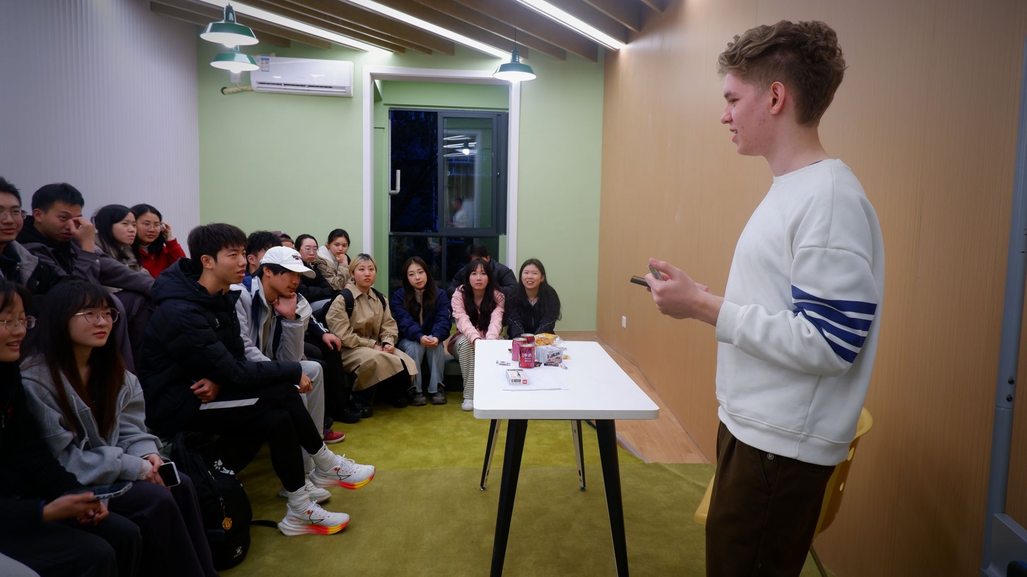 活动接近尾声时,Emil用一句话表达了自己对本次活动的感受。Emil表示:“我很高兴能够在这里与这么多热爱美食和文化的同学交流,我很开心,期待未来能有更多的机会和他们交流。”