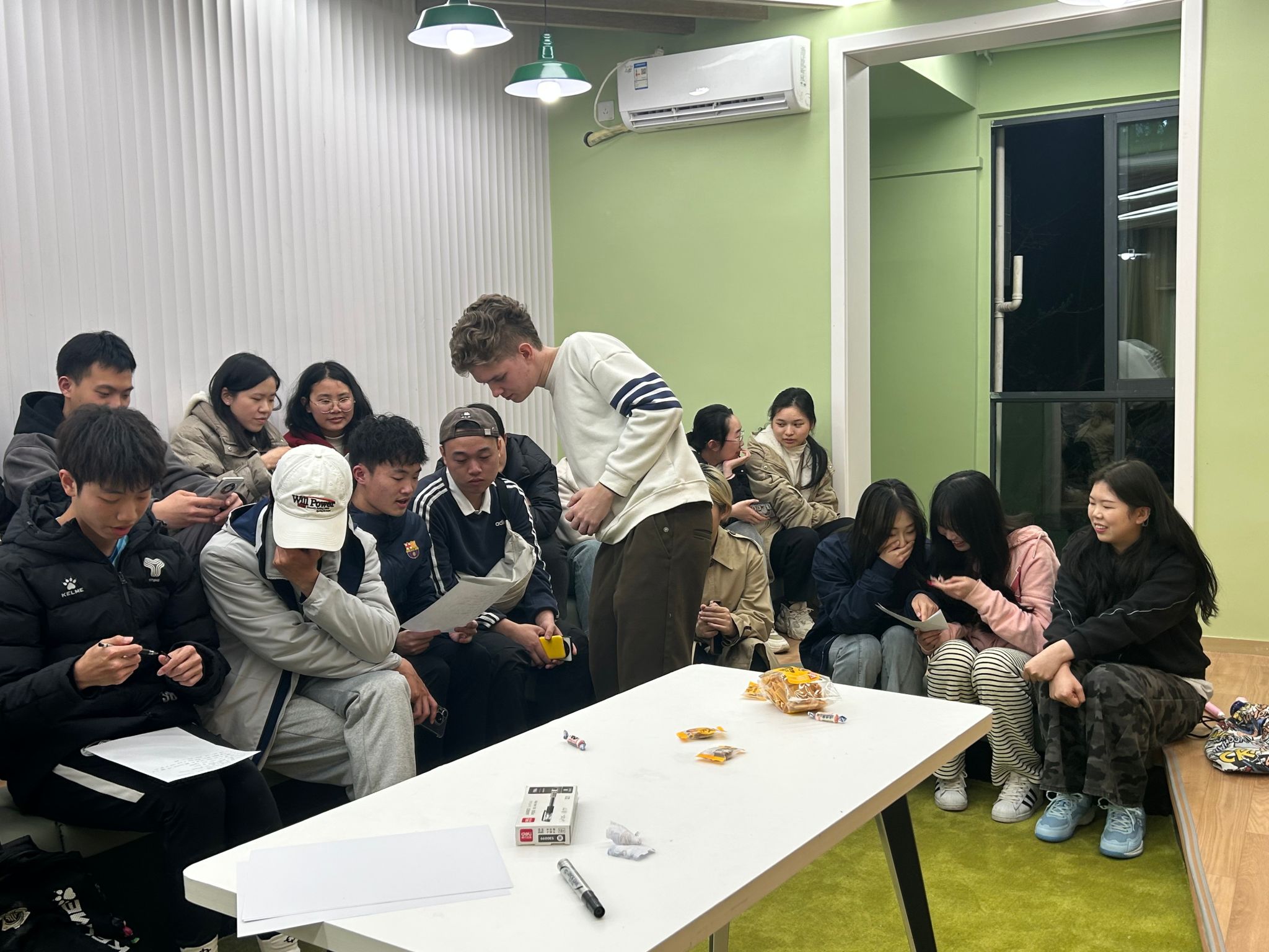 活动中,特别安排了小组讨论环节。学生们被分成若干小组,每组选择一个国家或地区的特色美食进行研究,并准备一份简短的英文介绍。这个游戏不仅考验了学生们的语言理解能力和词汇量,还让他们在游戏中体验到了不同文化的魅力。在准备过程中,Emil主动加入各小组,与学生们一起探讨、交流。他分享了自己在德国留学期间品尝到的各种美食,以及他对这些美食背后文化的理解。Emil的参与,不仅为学生们提供了宝贵的建议和指导,还加深了他们对不同文化背景下美食的理解和欣赏。