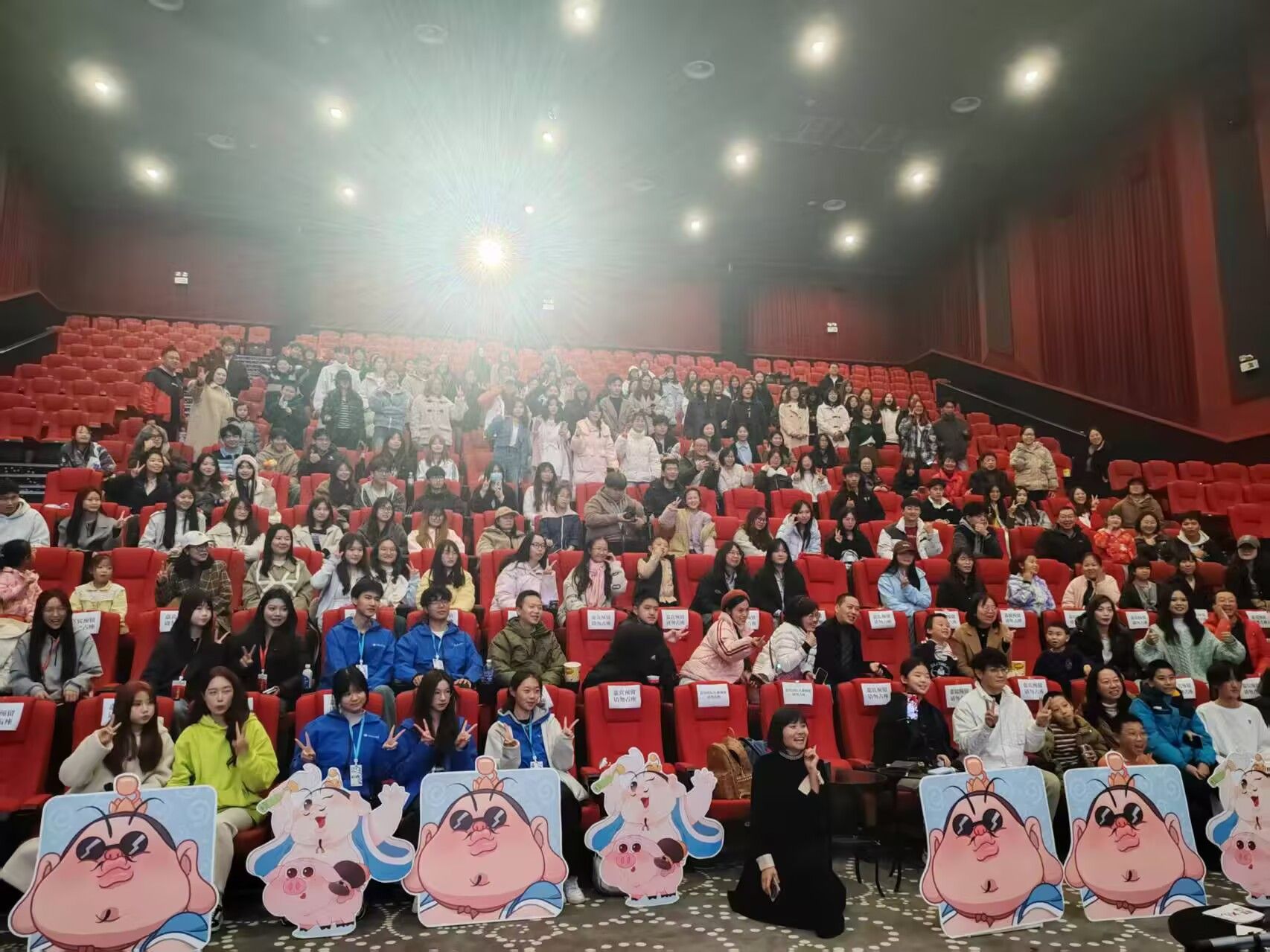 活动当日,影城门口早早便排起了长队,同学们眼中闪烁着期待的光芒,手中紧握着提前准备好的海报、笔记本,迫不及待想要入场。大家有序检票,安静入场,满心欢喜等待这场特别之旅开场,足见对动画和配音艺术的尊重与热爱。