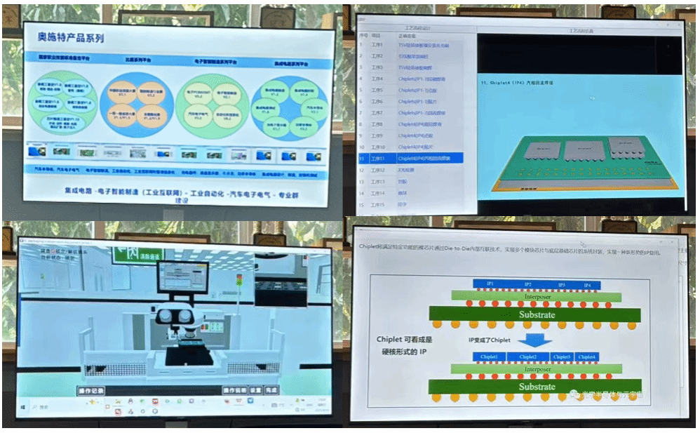 常州奥施特信息有限公司技术总监龙震介绍的 “集成电路封装技术仿真课程平台 V1.4”,有效解决了传统集成电路封装技术教学受实验设备、场地限制,学生难以深入理解知识的问题;该平台基于先进仿真技术,模拟封装全过程,以逼真三维模型和动态演示呈现操作细节。龙总监讲到平台在教学与实践方面优势显著。教学上,教师能灵活设置场景参数,学生可自主实验,避免设备材料损耗,还能利用平台的数据分析功能加深知识理解;课程建设中,可融入多门相关课程创新教学。实践教学里,它助力学院开展课程设计、毕业设计等项目,提升学生理论实践结合与解决问题的能力,还能作为学科竞赛训练工具,保障学院在竞赛中取得好成绩。