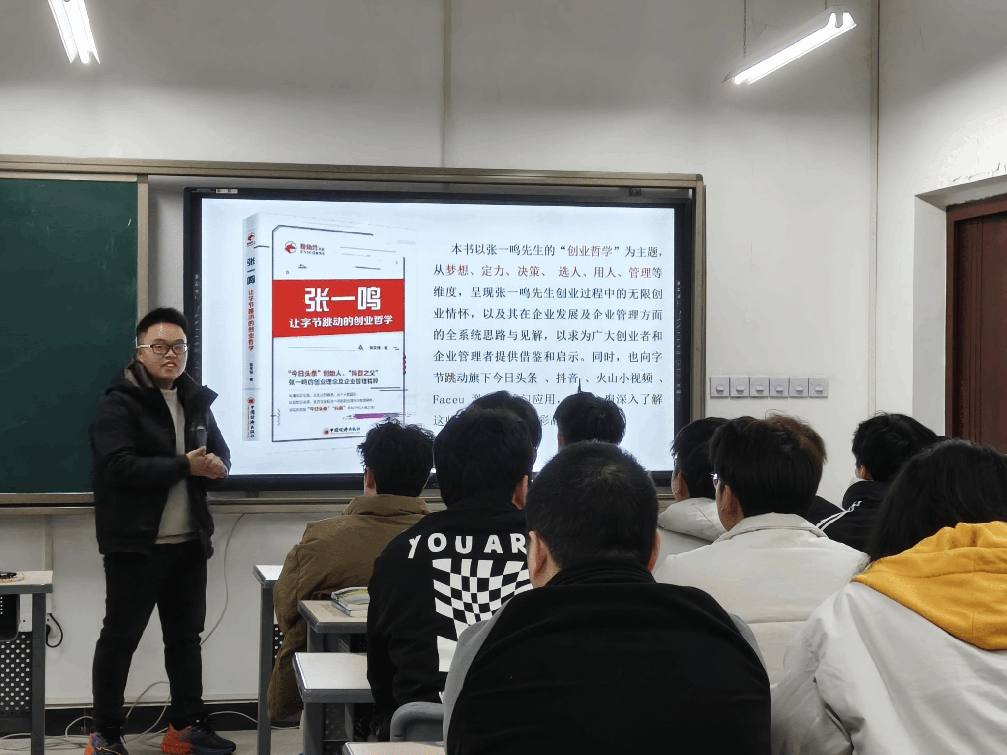 1月6日,智能电气教研室王月东老师组织2022级电气工程及其自动化6班,成功举办了一场以“创新与创业”为主题的大咖阅读分享会。此次分享会聚焦于《张一鸣让字节跳动的创业哲学》一书,旨在通过深度解读字节跳动创始人张一鸣的创业历程与管理哲学,激发同学们的创新思维。