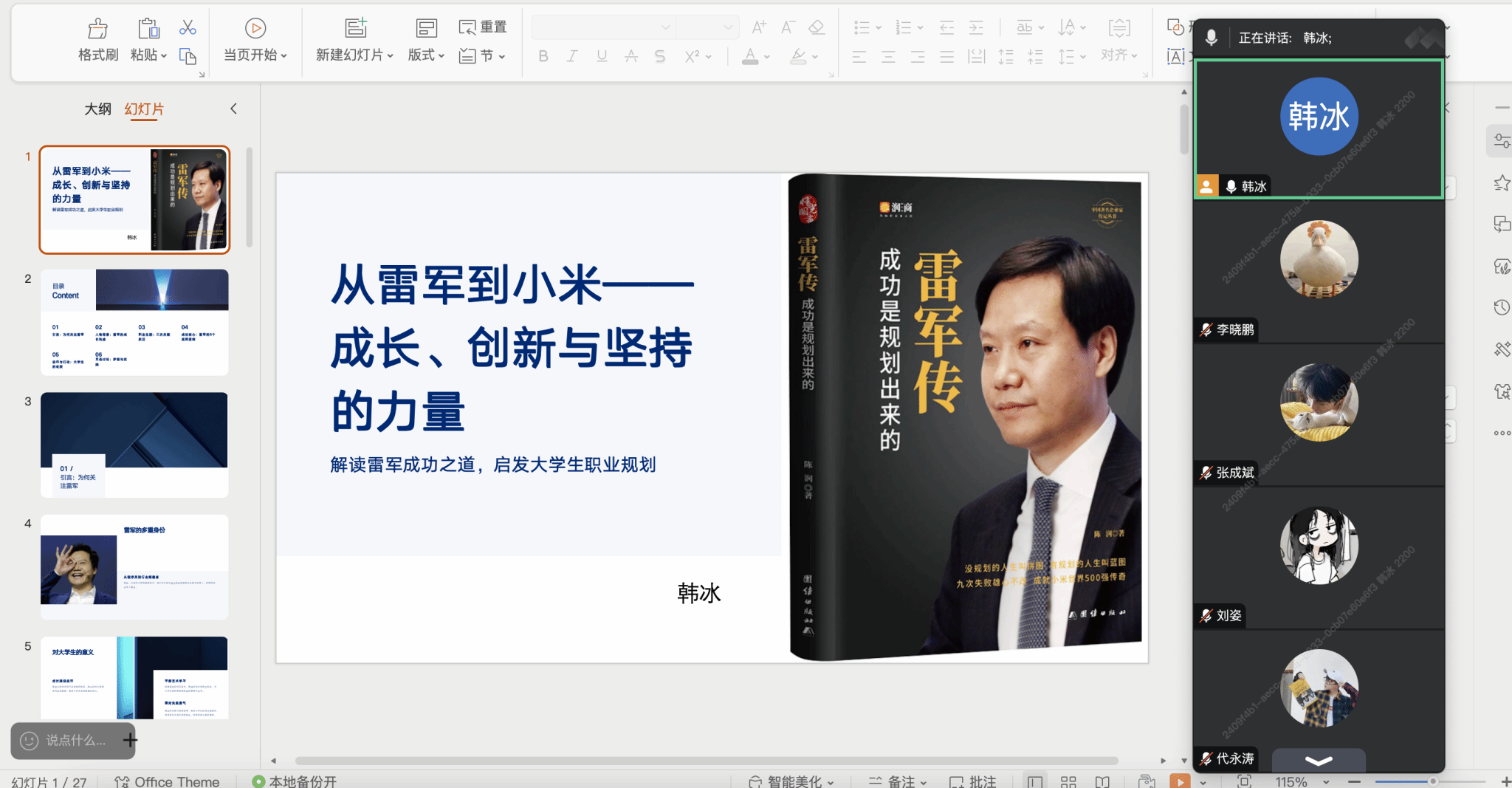 活动中,韩冰以“小米七年跻身世界500强”为案例,通过生态链建设视频启发学生探索轨道交通智能化创新路径。互动环节聚焦“技术迭代与用户体验平衡”“创业团队股权机制”等议题,结合书中“小米合伙人制度”剖析现代企业管理对工程技术团队的启示。