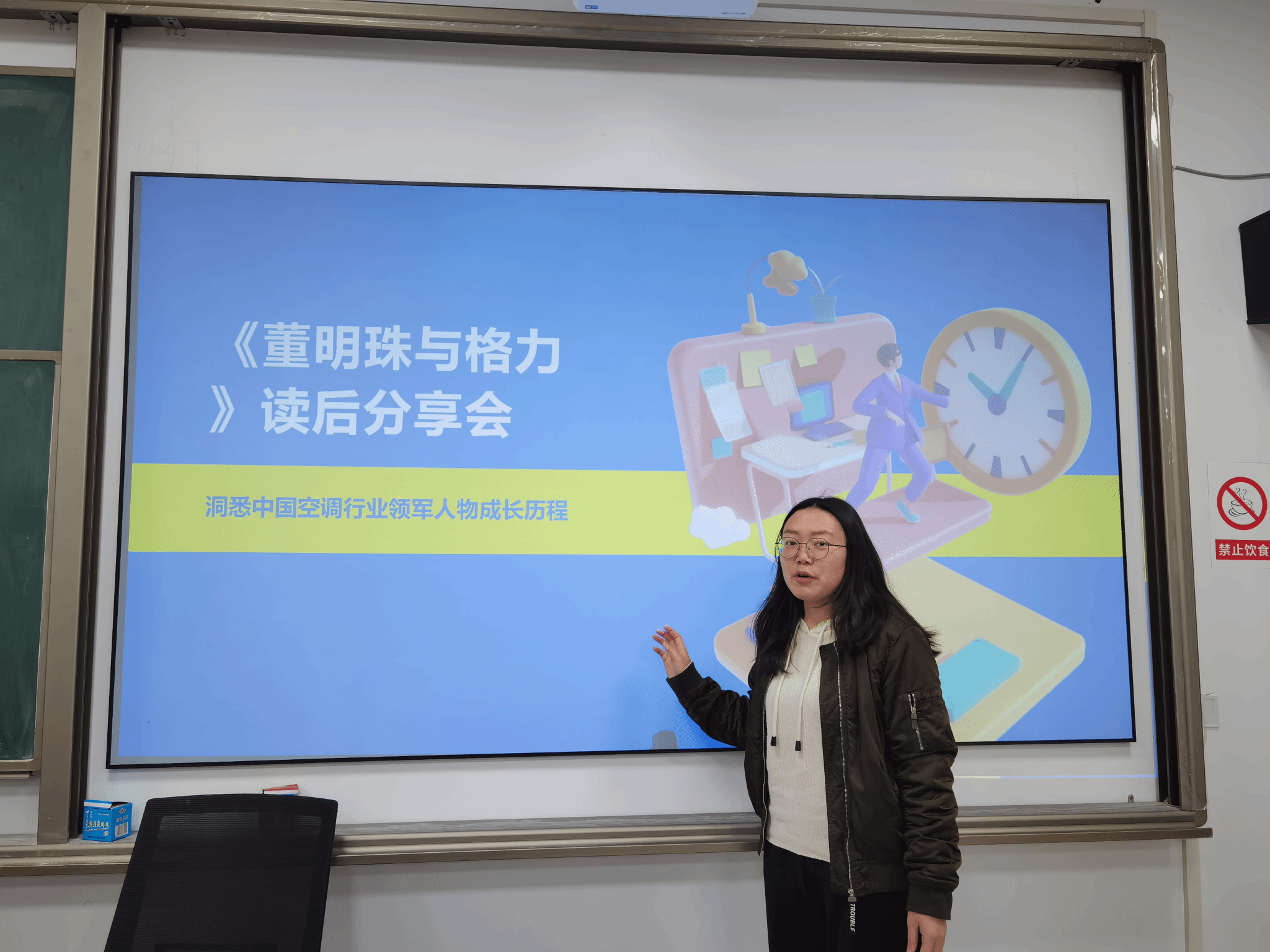 本次活动旨在引导学生剖析格力电器在董明珠领导下的战略转型历程,揭示其从家电巨头迈向全球工业科技集团的核心逻辑。活动现场,学生们聚精会神地阅读这本书,不时交流心得。文璐同学表示“作为大学生,我们要向董明珠学习。在学业上,面对困难不应退缩,要像她一样坚韧不拔,努力提升自己的专业能力;在未来职场规划中,要坚守原则,注重自身价值的塑造,以创新思维和拼搏精神迎接挑战。”
