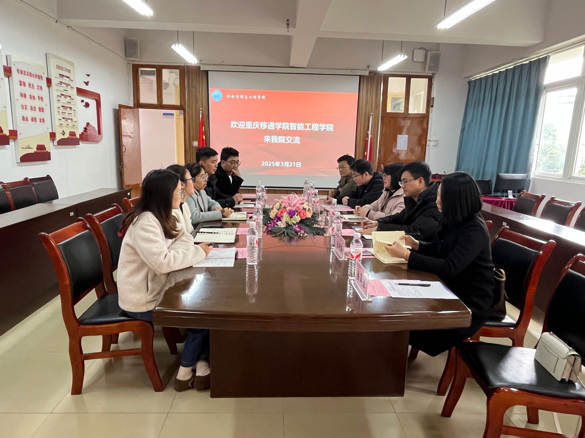 为深入聚焦专业建设、人才培养、实验室建设等核心领域,携手探索新时代工科教育高质量发展的创新路径,3月21日下午2点,重庆移通学院智能工程学院院长党晓圆、智能车辆教研室主任陈龙灿、智能制造教研室主任寇晓培、机械基础实验教学中心主任张钰柱、智能交通实验教学中心主任郝志宽、机械设计制造及其自动化专业负责人余翠兰一行6人前往重庆人文科技学院机电与信息工程学院开展专业建设交流座谈会。重庆人文科技学院机电与信息工程学院院长强华、副院长李正网、邓凌云等学院领导及骨干教师参加会议。双方在3301会议室共同开启了一场关于工科教育的深度研讨。