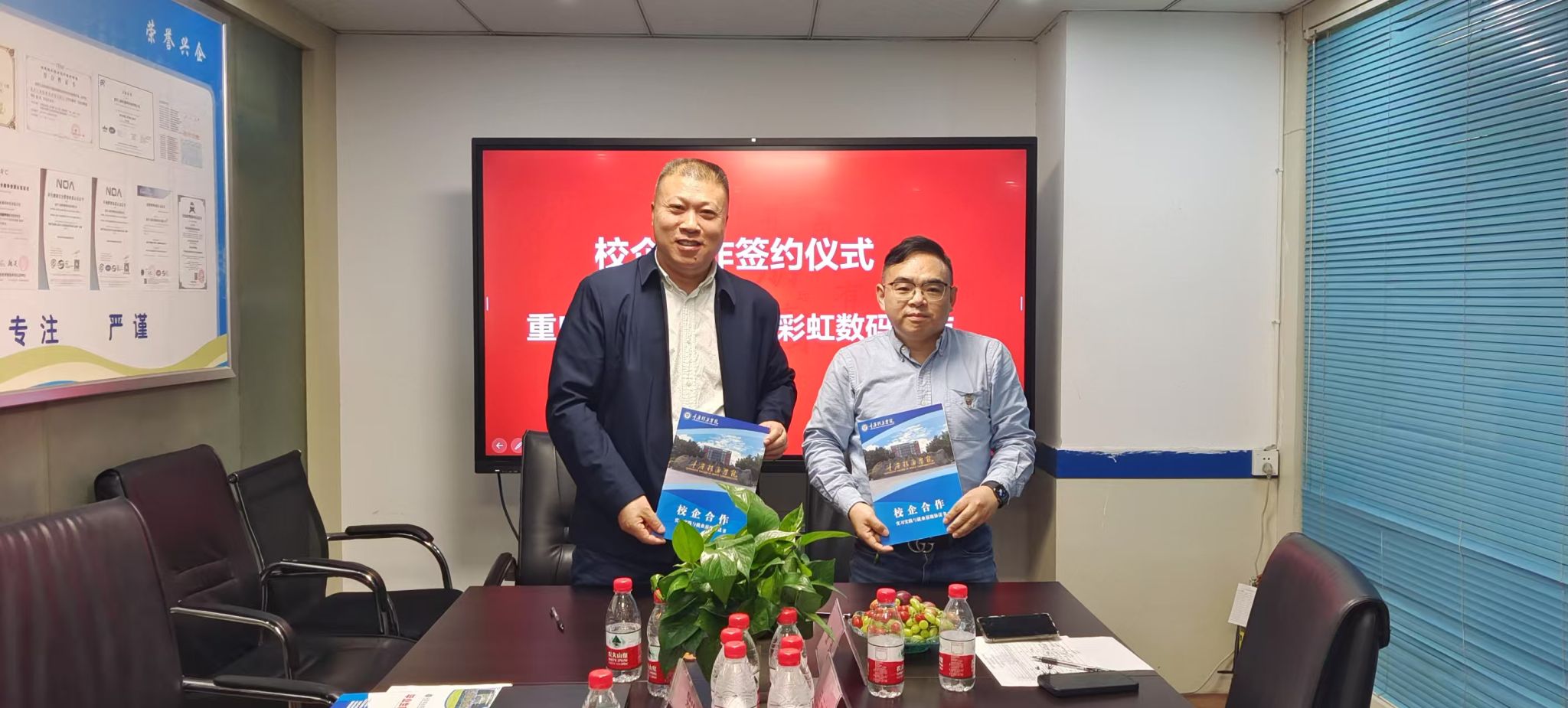 最后,潘显兵院长与七彩虹公司董事长宋龙分别代表大数据学院和七彩虹公司签订校企合作协议,也邀请七彩虹公司和重庆市大数据和人工智能产业协会的专家们到学校参观指导。