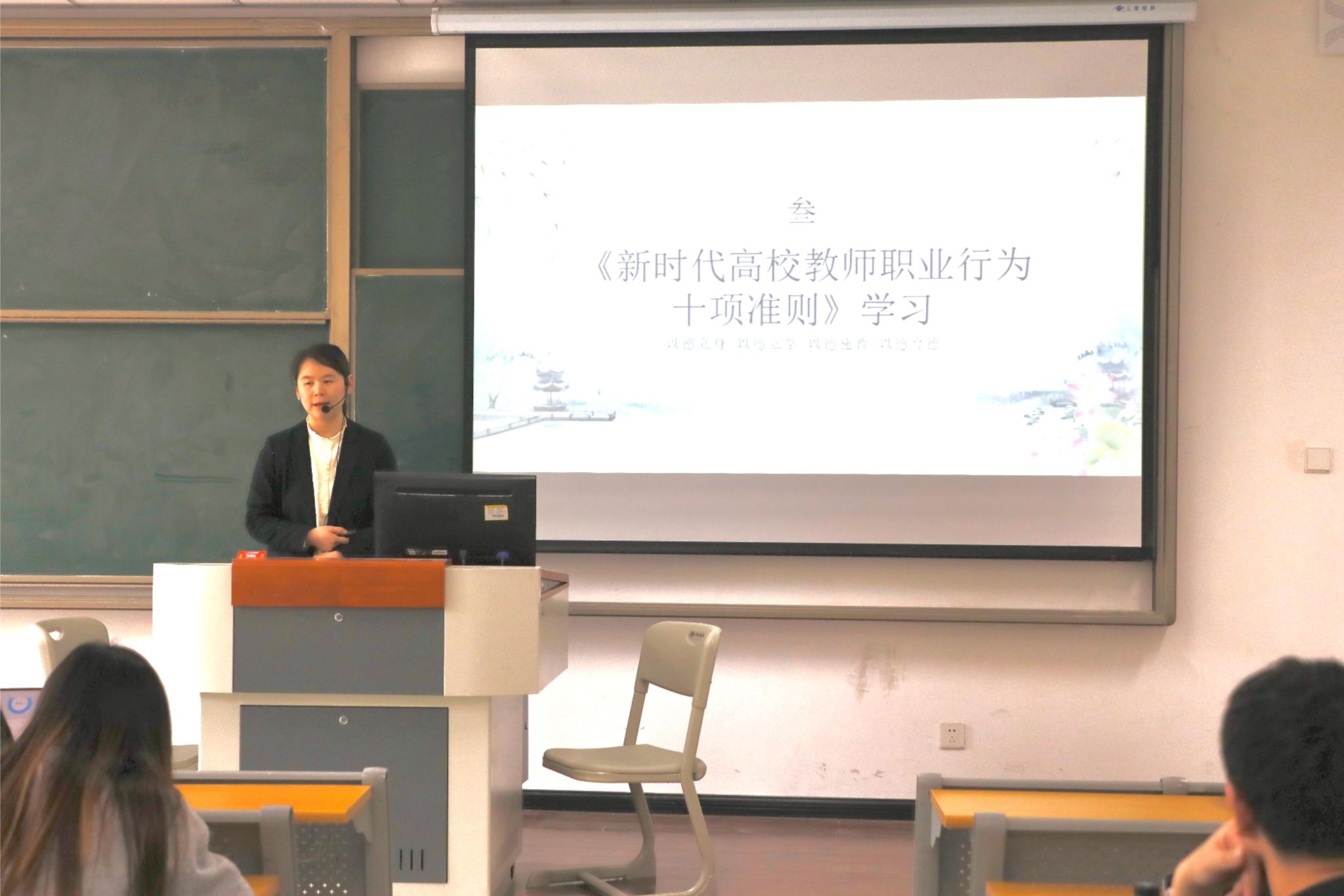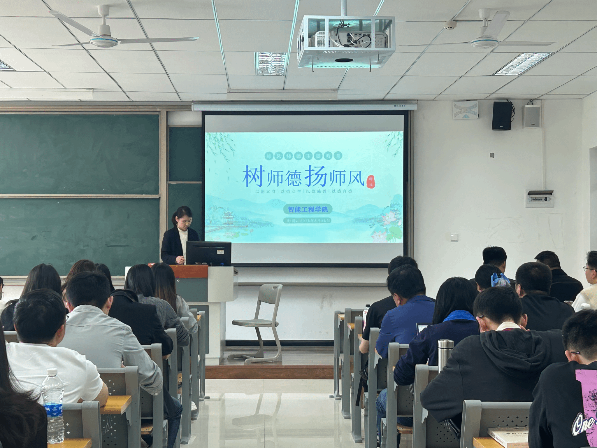 为深入贯彻落实新时代教师职业行为准则,强化师德师风建设,持续推进教育部关于高校教师师德师风建设工作的部署要求,加强对教职工教书育人的思想价值引领,3月26日14:00,智能工程学院在9201举办“树师德·扬师风”专题教育讲座。本次讲座由智能工程学院教师党支部书记王瑞芳老师担任主讲,学院副院长李洁主持会议,全院教师及辅导员队伍参与本次专题讲座。